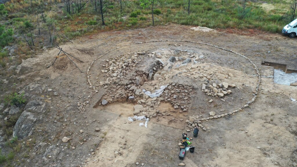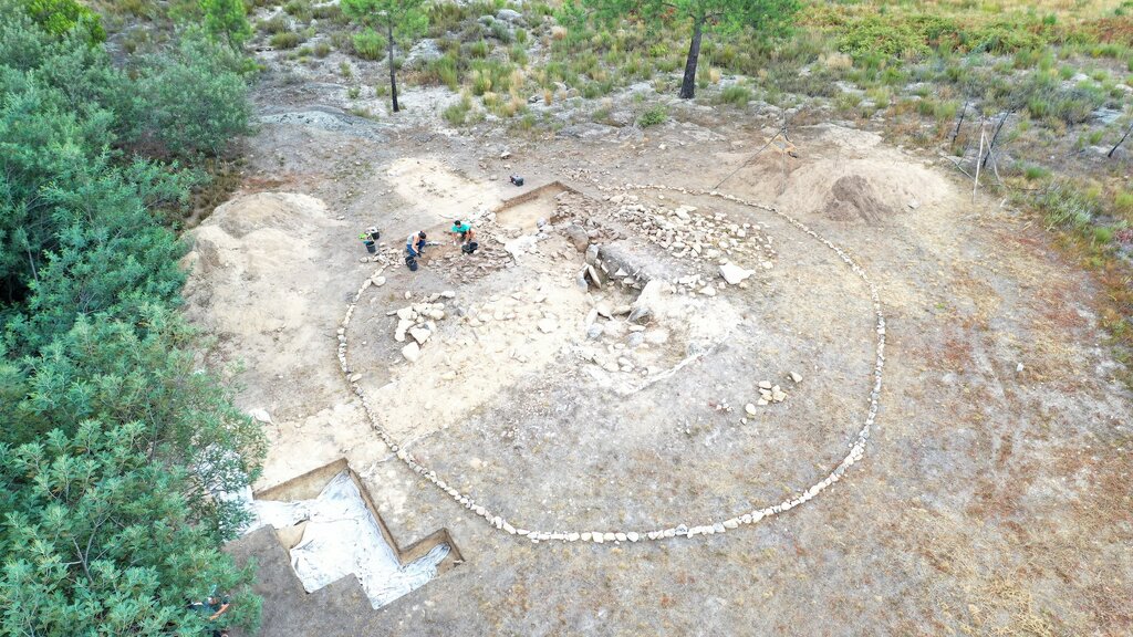 Os resultados deste ano permitiram identificar um conjunto de estruturas em negativo a noroeste da estrutura tumular (vulgarmente conhecida por mamoa), que parecem estar associadas a um alinhamento de postes em madeira e que poderão indicar uma ocupação daquele espaço, anterior à construção do próprio monumento.
