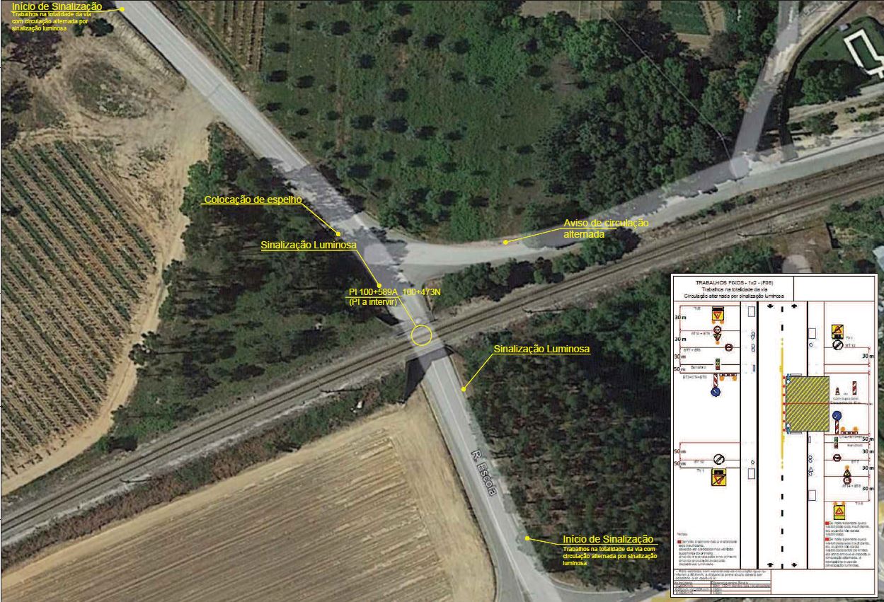 A gestão de tráfego local efetuar-se-á com recurso a sistema de circulação alternada com sinalização luminosa, devido à ocupação de via de transito em duas fases, à esquerda e à direita da faixa de rodagem, de acordo com a planta anexa