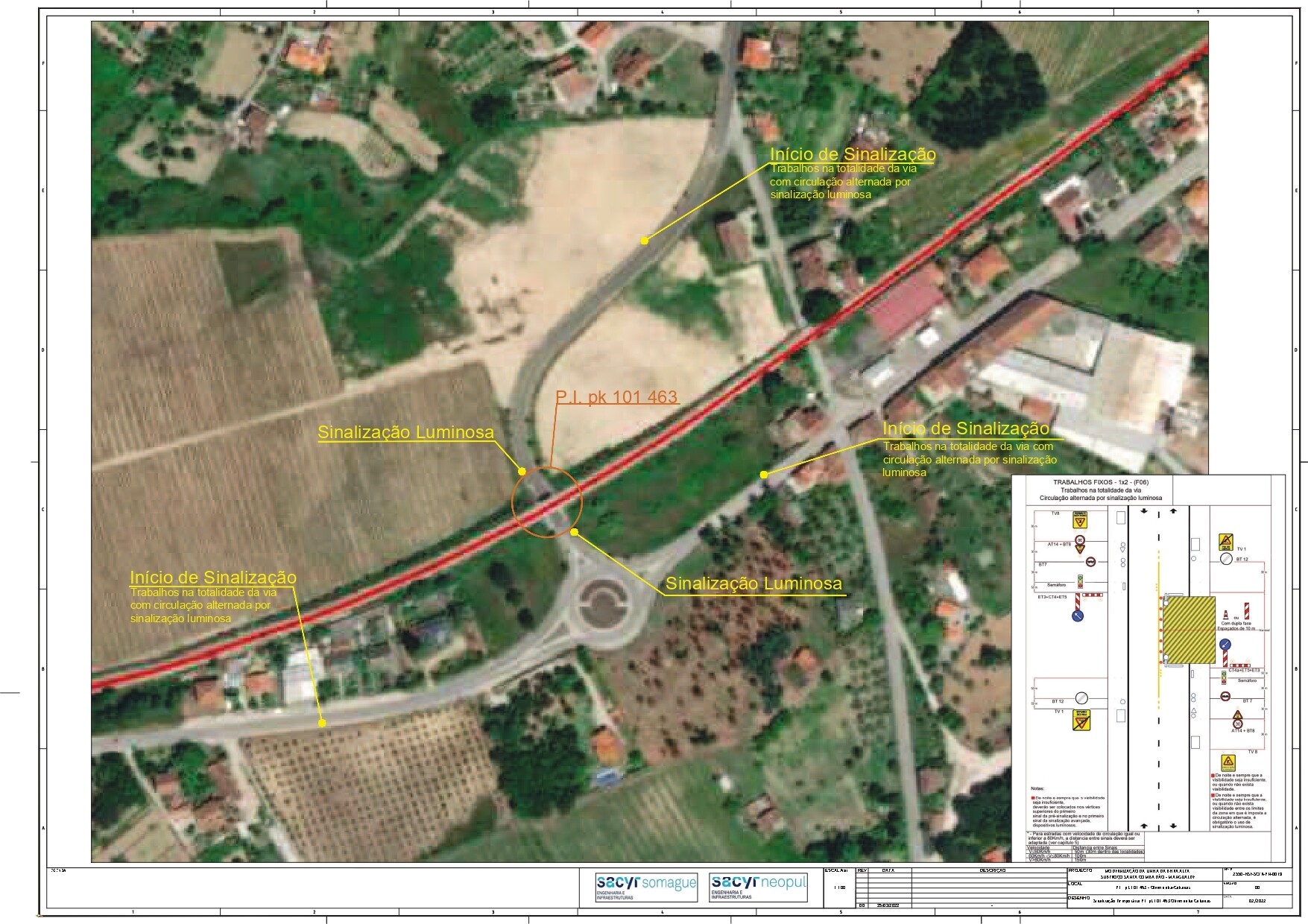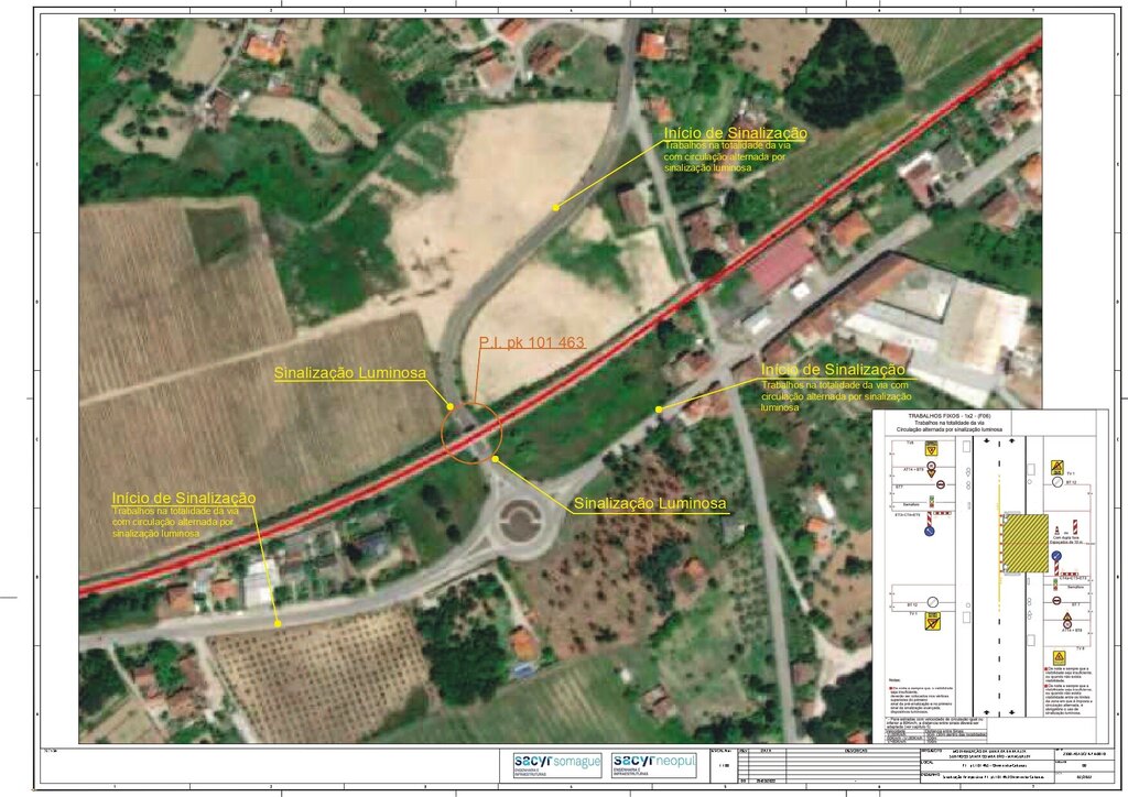 A gestão de tráfego local efetuar-se-á com recurso a sistema de circulação alternada com sinalização luminosa, devido à ocupação de via de transito em duas fases, à esquerda e à direita da faixa de rodagem, de acordo com a planta anexa