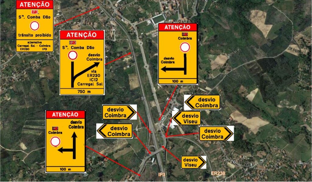 Para a realização dos trabalhos de betonagem do tabuleiro do viaduto ferroviário, o trânsito será desviado para o IC12 e ER230 entre os quilómetros 82 e 101 do IP3 entre as 12h00 do dia 4 e as 14h00 do dia 8 de setembro. Os trabalhos e respetivo desvio estarão devidamente sinalizado em toda a sua extensão.