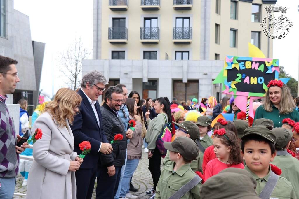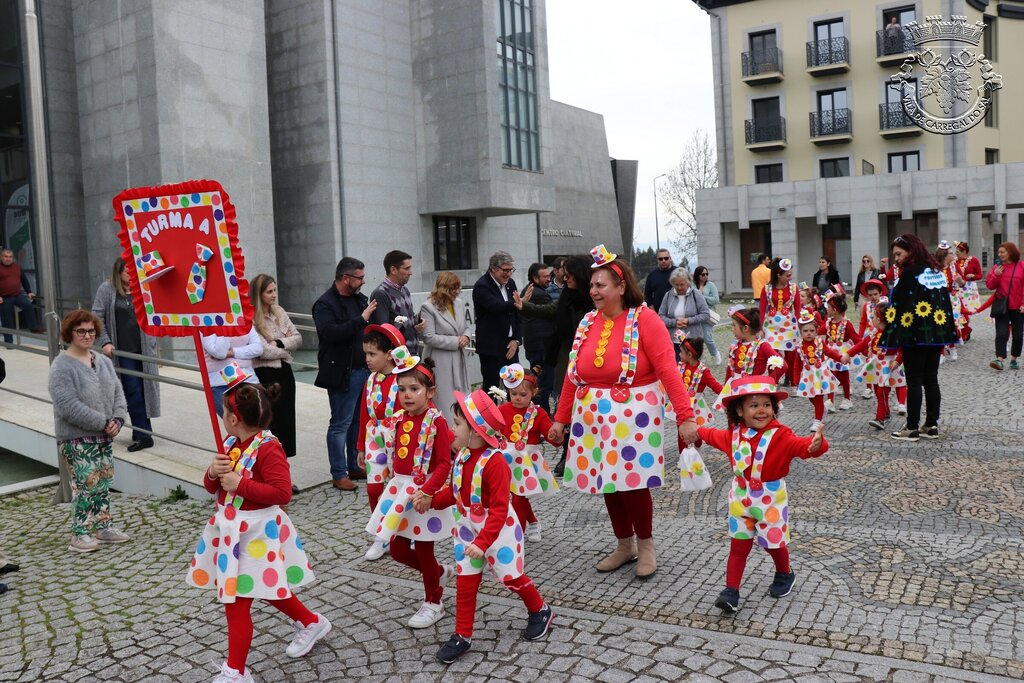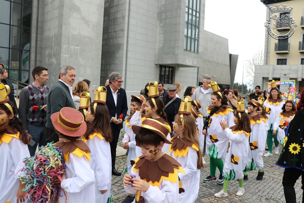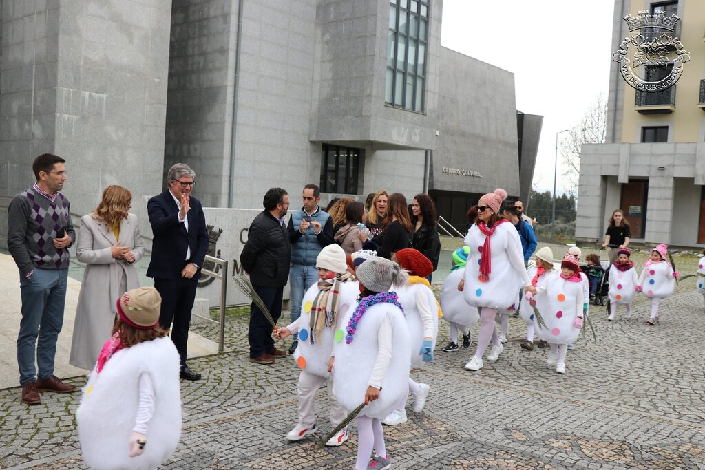 Pais, familiares, amigos e transeuntes encheram as ruas e assistiram, encantados, ao desfile que terminou com a habitual passagem em frente da entrada do edifício dos Paços do Concelho onde elementos do Executivo Municipal em permanência e alguns presidentes de Juntas de Freguesia, os aguardavam para saudar os pequenos foliões!