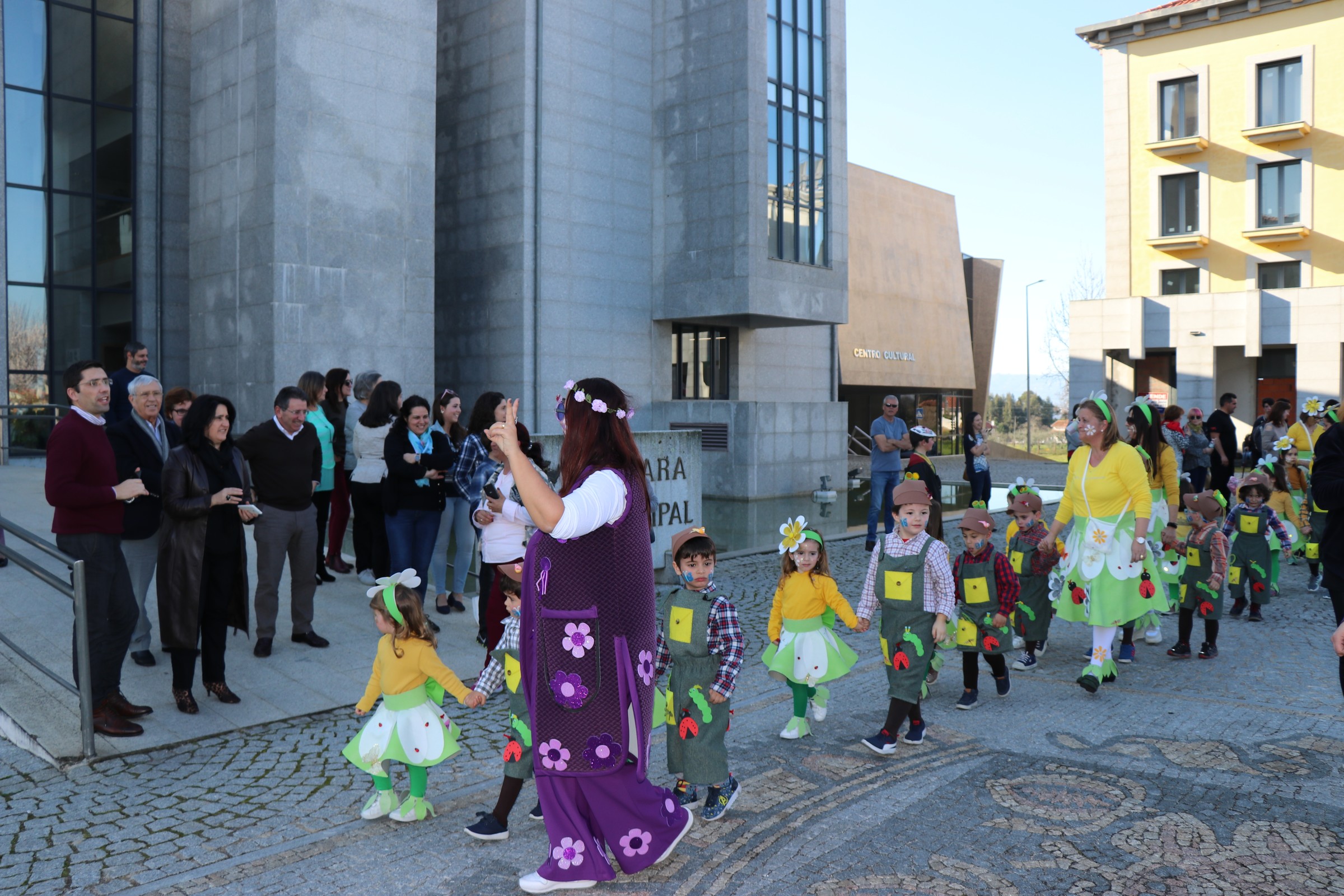 A iniciativa terminou com a habitual passagem em frente da entrada dos Paços do Concelho, onde elementos do executivo municipal e diretores do Agrupamento de Escolas os aguardavam para saudar os pequenos foliões!