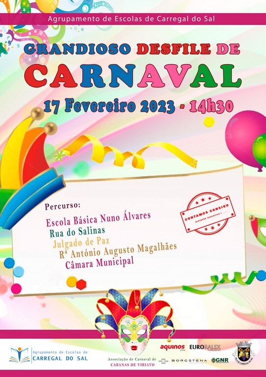 O Agrupamento de Escolas de Carregal do Sal realiza na próxima 6.ª feira, dia 17 de fevereiro, o habitual desfile de Carnaval na vila de Carregal do Sal.