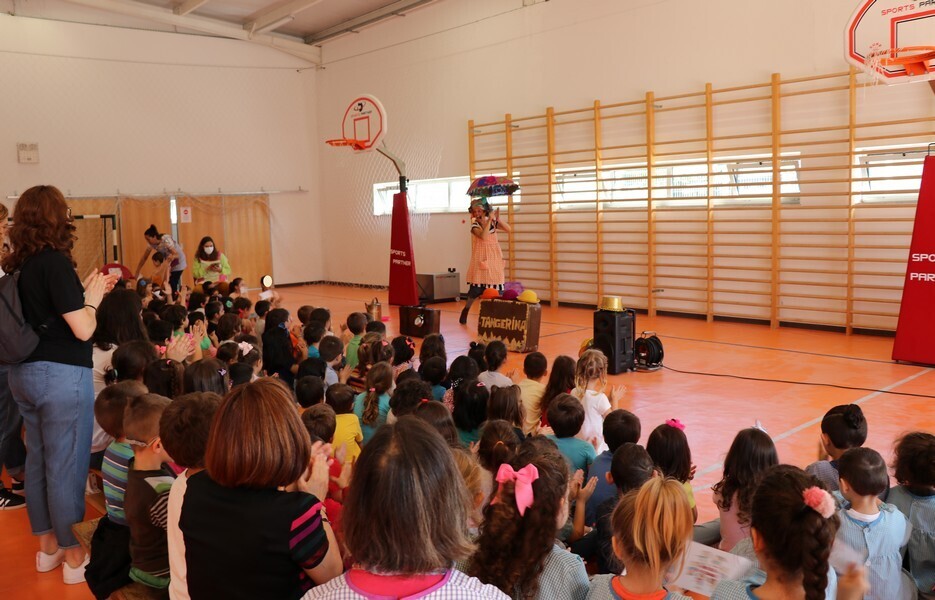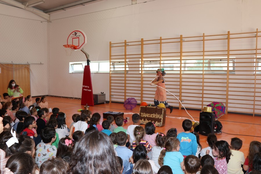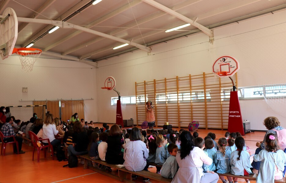 O pavilhão desportivo do Centro Educativo Nuno Álvares transformou-se numa sala de espetáculos e acolheu as cerca de 200 crianças do ensino pré-escolar do Concelho que assistiram, eufóricas, ao Tangerina “Atchim Atchim Atchum”.