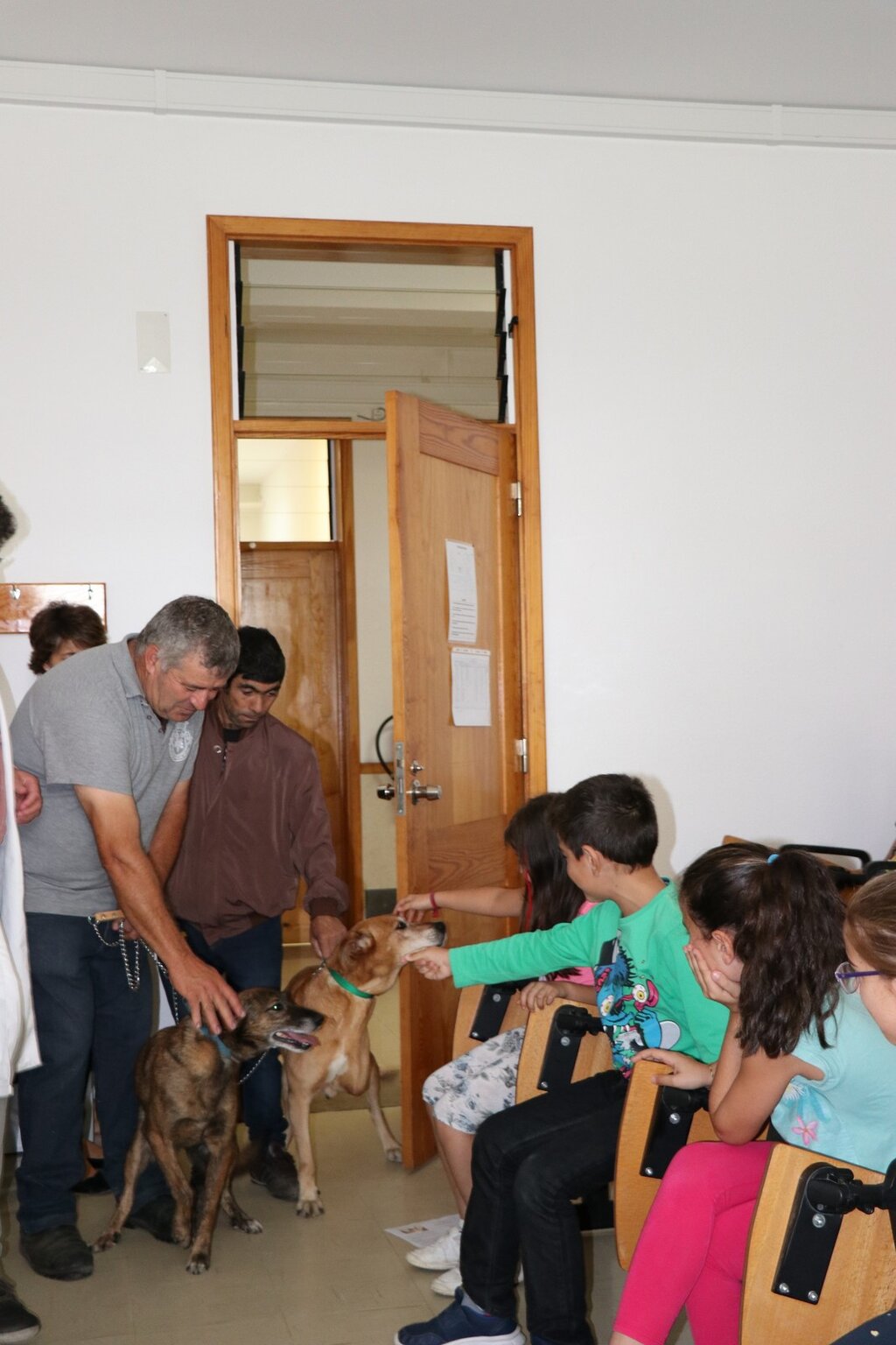 Este ano, as estrelas da sessão foram duas cadelas do Canil – a “Talita” (mascote) e a Laica, a gata “Osíris” e a tartaruga “Rosita” que também foram à escola e uns e outros foram recebendo os mimos dos mais pequenos, encantados com a visita dos animais.