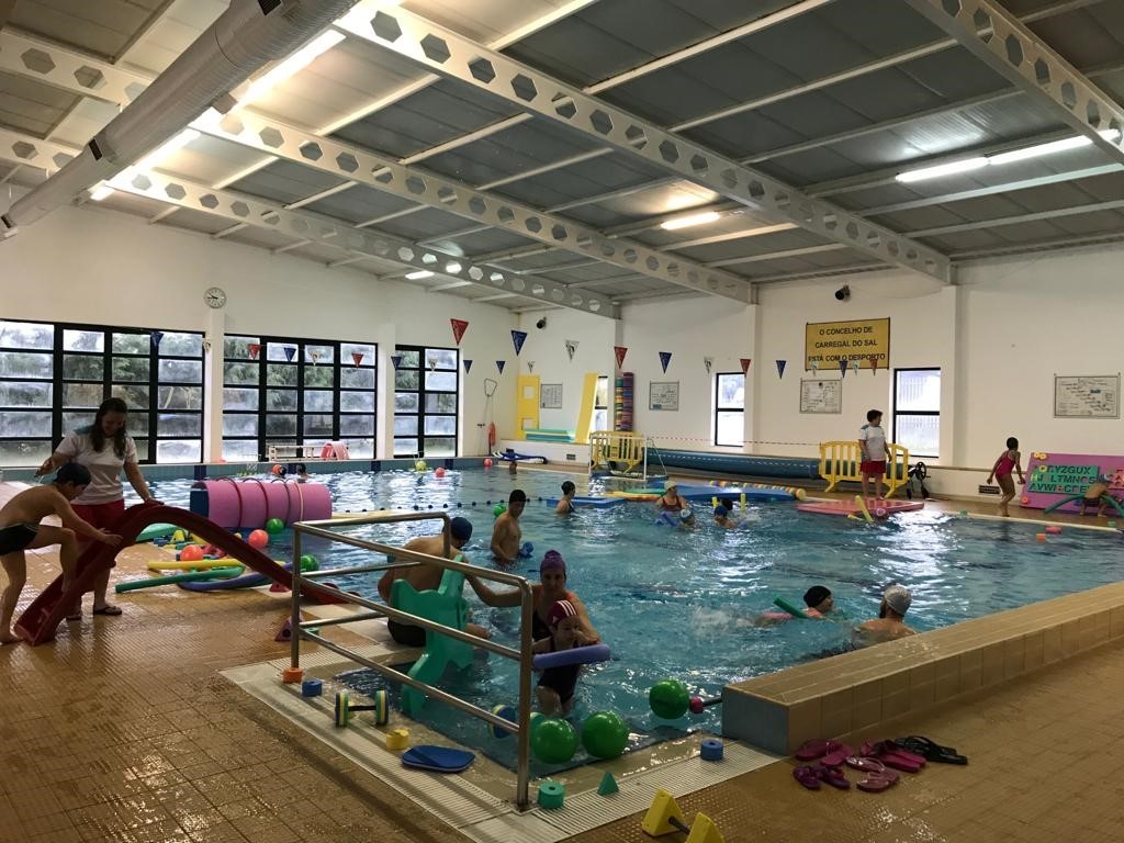 Pelas 9h, no âmbito do Festival de Natação, pais/ familiares e filhos (alunos da Escola Municipal de Natação) realizaram atividades aquáticas conjuntas num convívio salutar que primou pela boa disposição e partilha de jogos dentro da água.