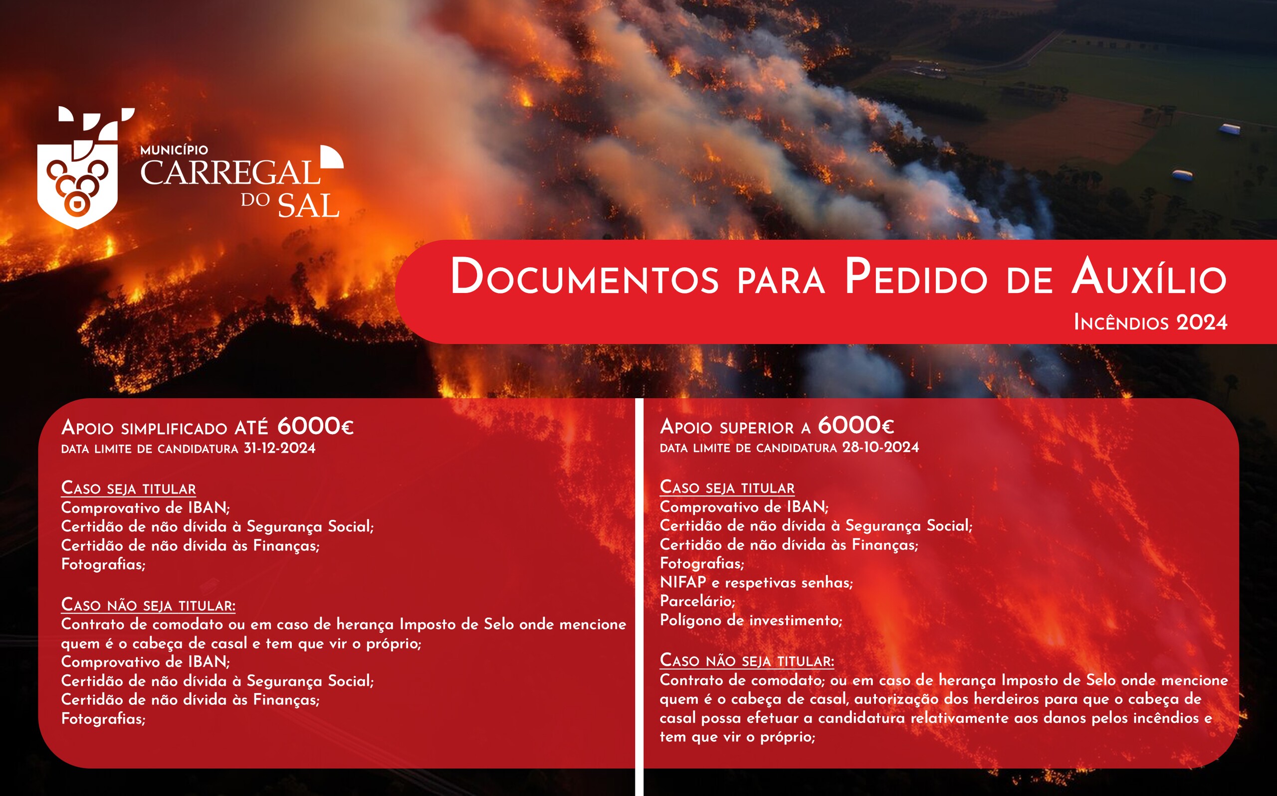 Documentos para pedido de auxilio relativamente ao incêndio 2024