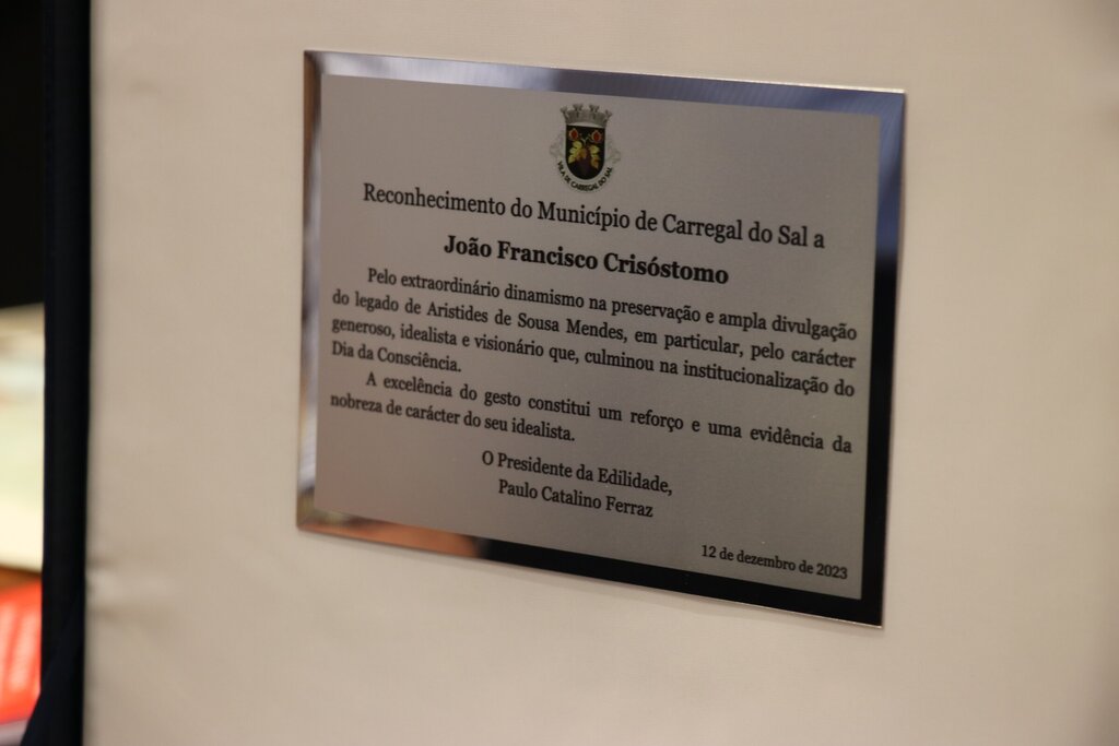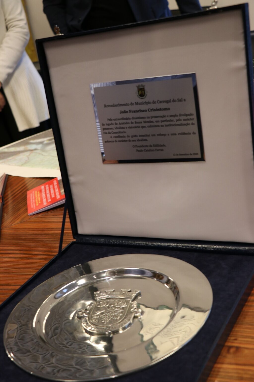 Aquando da visita aos Paços do Concelho, João Crisóstomo, perante a Presidente da Assembleia Municipal de Carregal do Sal, Cilene Lindinho, a Vice-presidente da Câmara Municipal, Isabel Azevedo; o Presidente da Junta de Freguesia de Cabanas de Viriato, Nuno Seabra; o Chefe de Gabinete, Jorge Figueiredo e de alguns amigos de João Crisóstomo, Paulo Catalino Ferraz referiu a honra de receber todo aquele legado assumindo tratar-se “de uma grande responsabilidade em ser o fiel depositário de tão importante espólio”. O Edil agradeceu penhoradamente o contributo de João Crisóstomo à causa nobre de preservação do nome de Aristides de Sousa Mendes e, em particular, ao enriquecimento do futuro Museu dedicado a este defensor dos direitos humanos, com aquela doação. O Presidente do Município, presenteou, João Crisóstomo com a entrega de uma salva e dedicatória gravada que atesta o carinho de Carregal do Sal pela dedicação de João Crisóstomo à preservação da memória do Cônsul de Cabanas de Viriato.