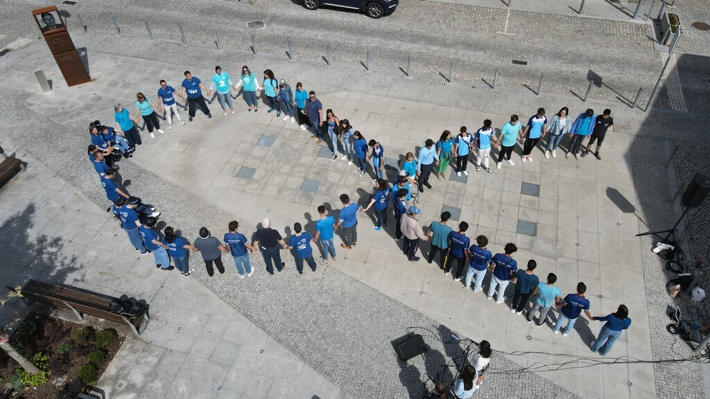 - Nesse mesmo dia, em todos os estabelecimentos de ensino do território do Concelho, foram desenhados laços humanos.