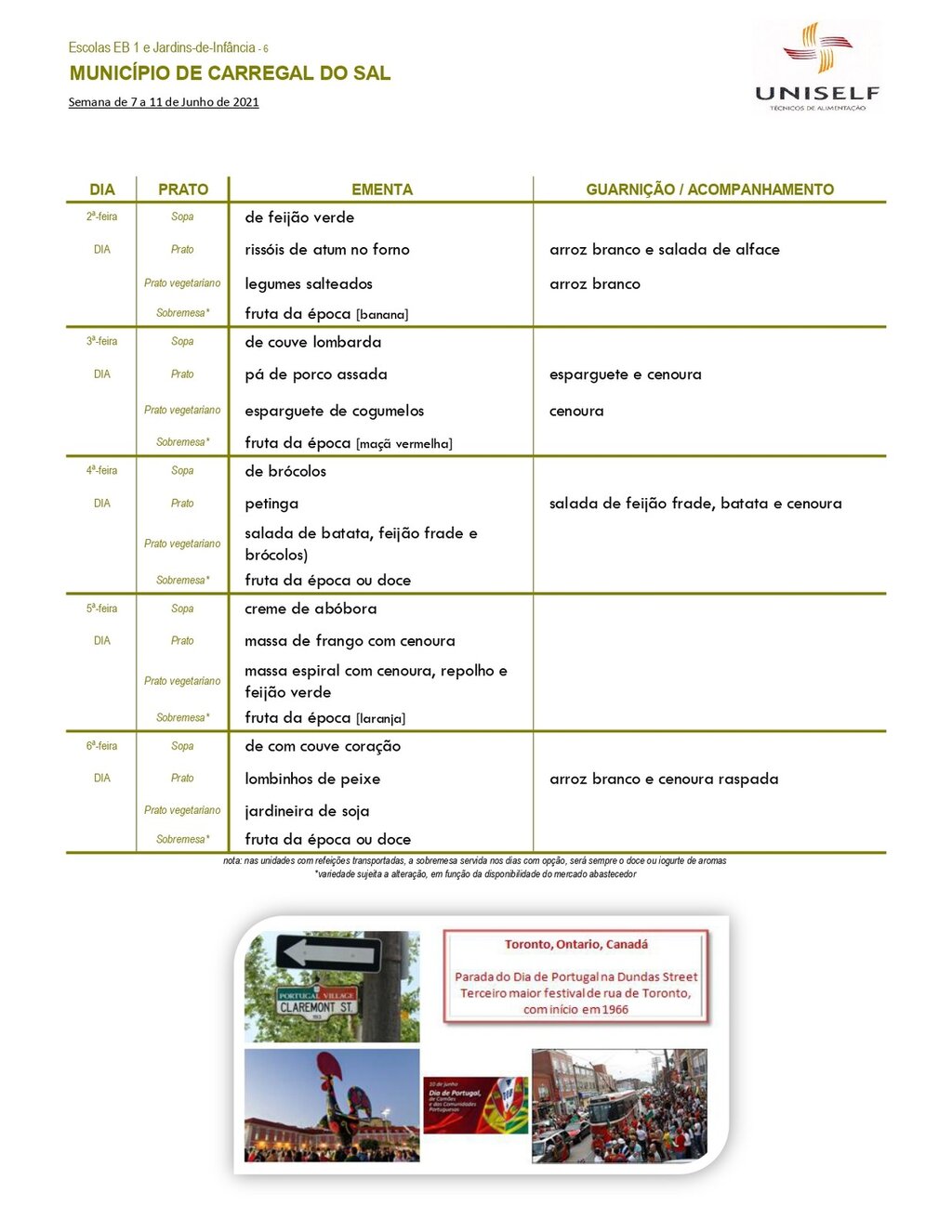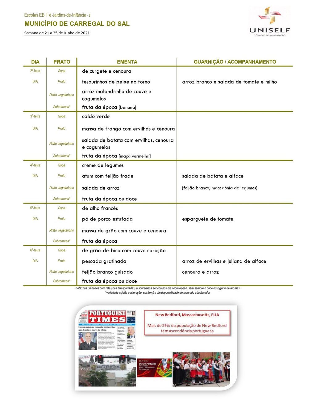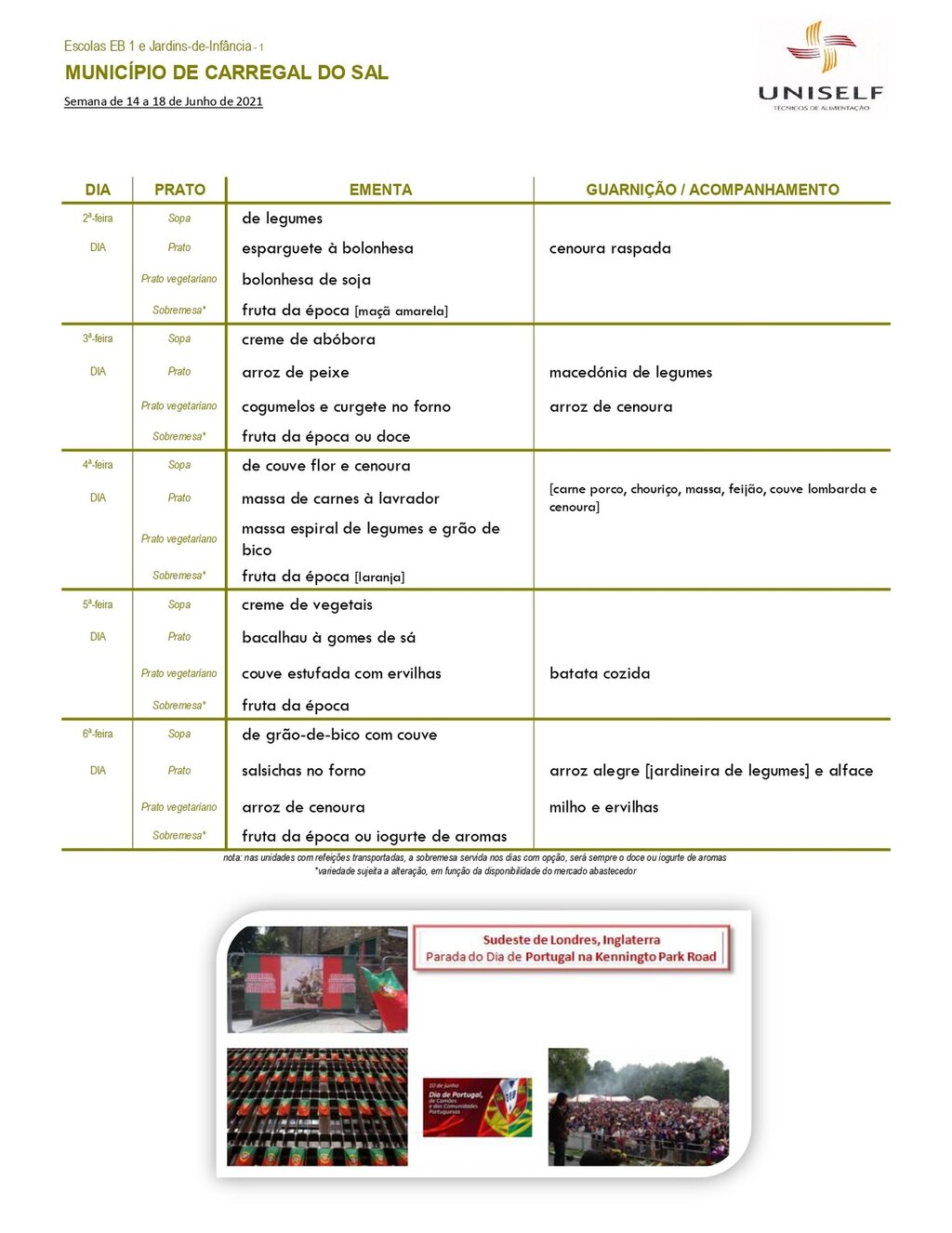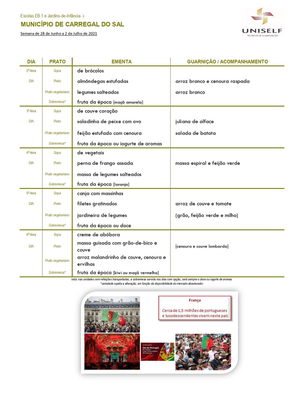 Ementa Escolar | junho 2021