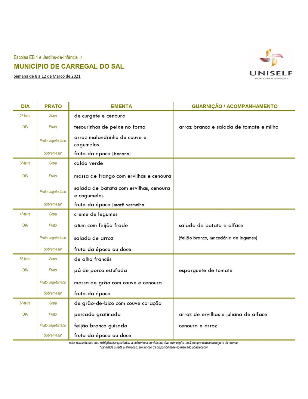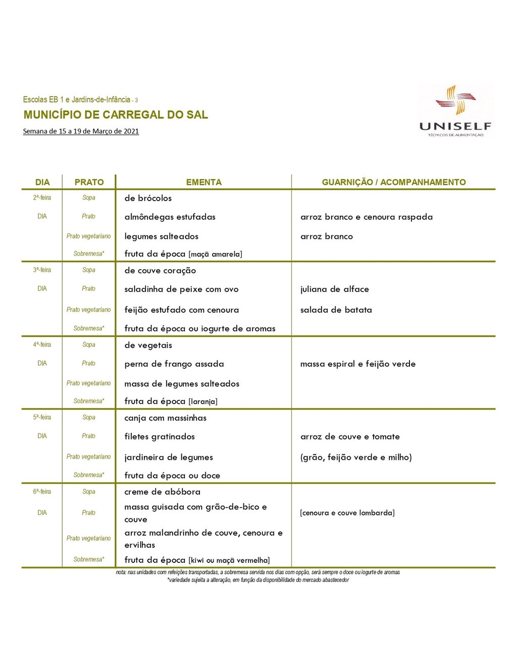 Ementa março 2021