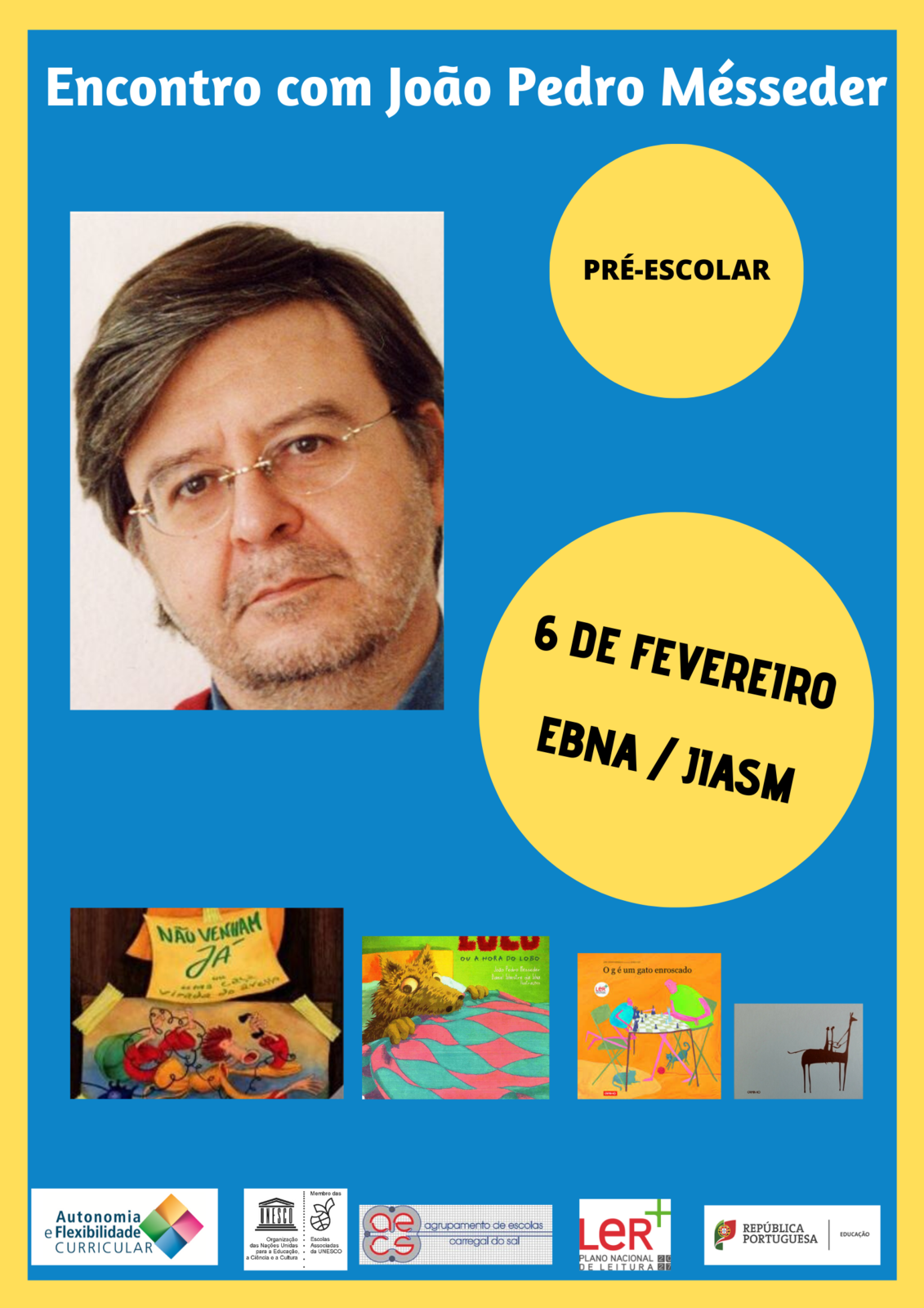 No dia 6 de fevereiro, o escritor João Pedro Mésseder tem encontro marcado com as crianças da educação pré-escolar. Realizará duas sessões na Escola Básica Nuno Álvares e uma sessão no Jardim de Infância Angelina de Sousa Mendes.