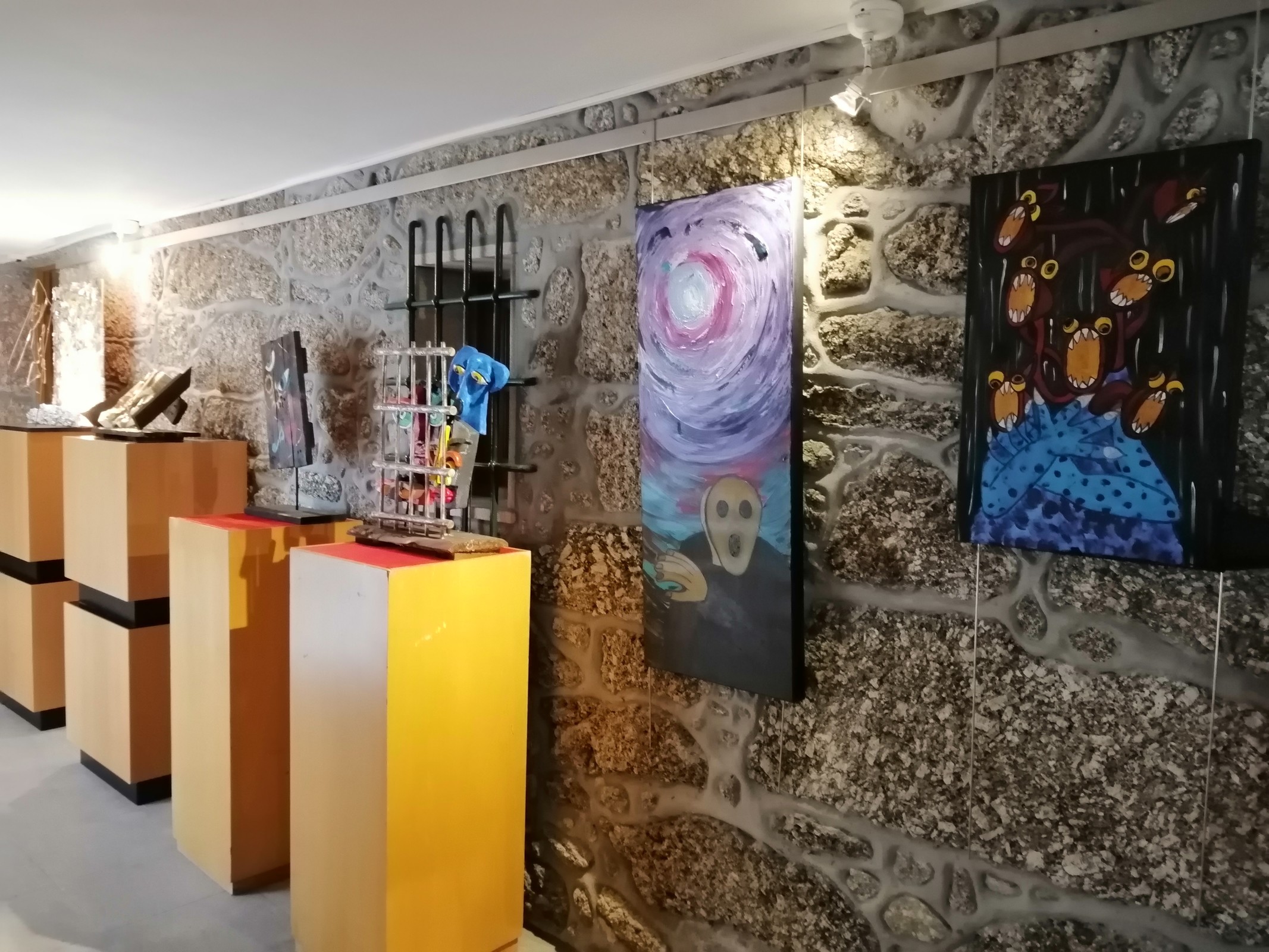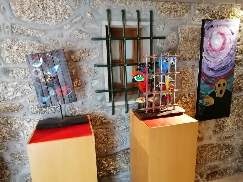 Entre risos, memórias, sentimentos internos a fervilhar após quase dois anos de privação motivados pela pandemia, foi finalmente possível quebrar “saudades de um abraço”. Esse é, aliás, o título de um dos trabalhos que integram a exposição de João Simões… Um entre tantos outros que, com o recurso a materiais “de trazer por casa” como esferovite, tintas, cola, papéis ou pedaços de madeiras permitiram “enfatizar uma pandemia”… pelos olhos do autor. Porque, afinal, durante todo esse tempo, o Mundo esteve prisioneiro de um vírus que nos tomou a liberdade.