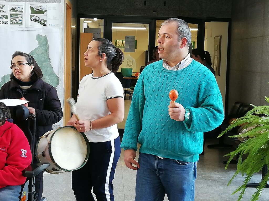 No primeiro dia, foram os utentes e técnicas do Equipamento 2 da APCV de Oliveira do Conde que cantaram e tocaram temas alusivos à quadra festiva, fazendo-se acompanhar pela Vereadora da Ação Social, Ana Cristina Borges.