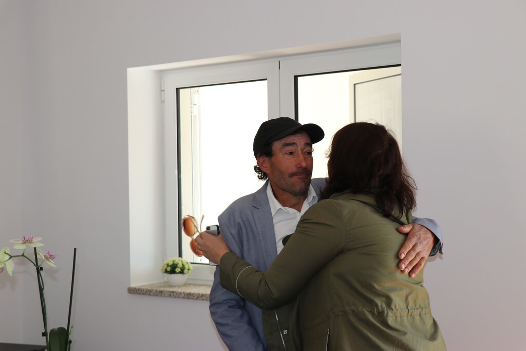 Um momento emocionante e testemunhado pelo presidente da Câmara Municipal, Rogério Abrantes; pelo vice-presidente, José Sousa Batista e pela vereadora da Ação Social, Ana Cristina Borges; por alguns familiares e amigos do munícipe e por responsáveis da equipa técnica da CCDR Centro e da empresa que executou as obras – Embeiral S.A.