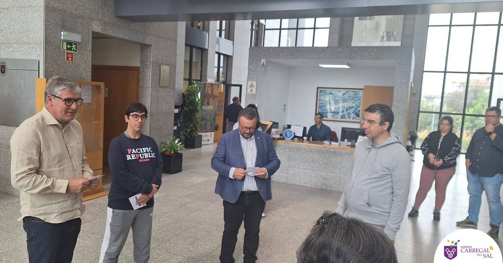 Recebidos no átrio dos Paços do Concelho pelo Presidente e Vereador da Câmara Municipal, respetivamente Paulo Catalino Ferraz e José Batista e por colaboradores do Serviço de Ação Social do Município, os visitantes fizeram a entrega de um flyer com frases da autoria dos próprios que espelham essa mensagem e a resiliência desses utentes.