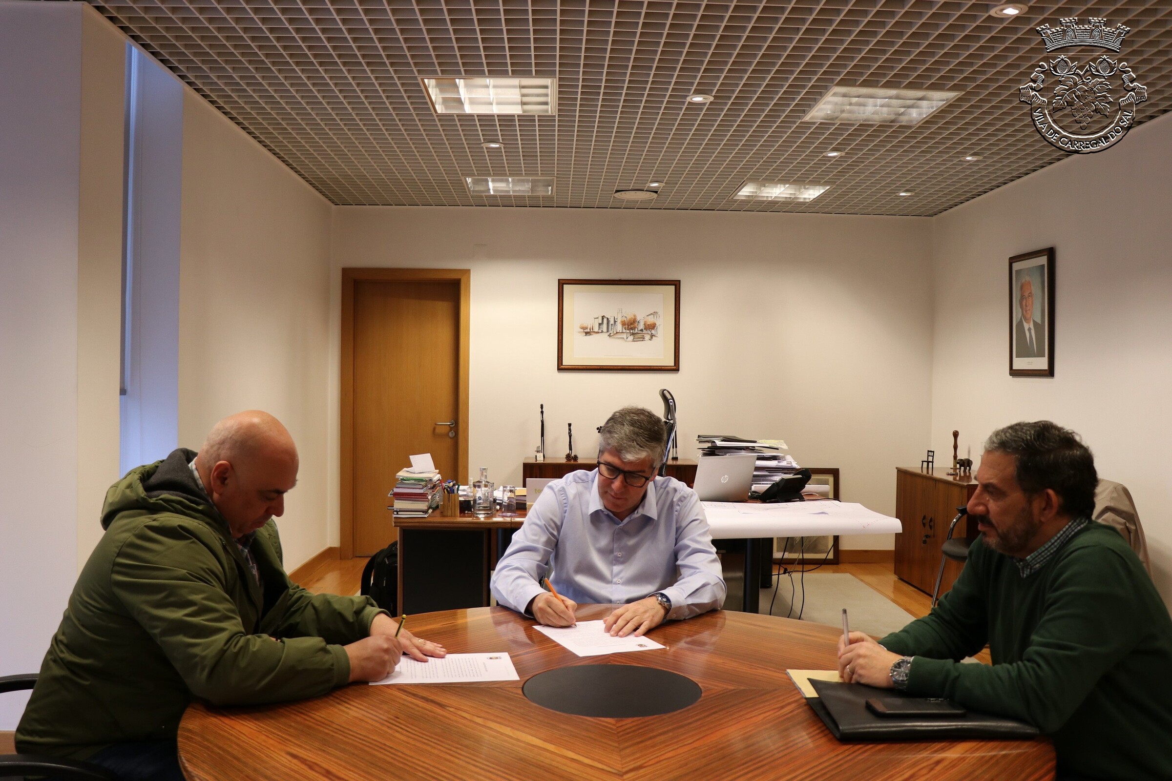 A formalização da assinatura do documento realizou-se no Gabinete do Presidente da Edilidade e contou com a presença do Chefe da Divisão de Obras Municipais e Ambiente da Câmara Municipal, Luís Figueiredo.
