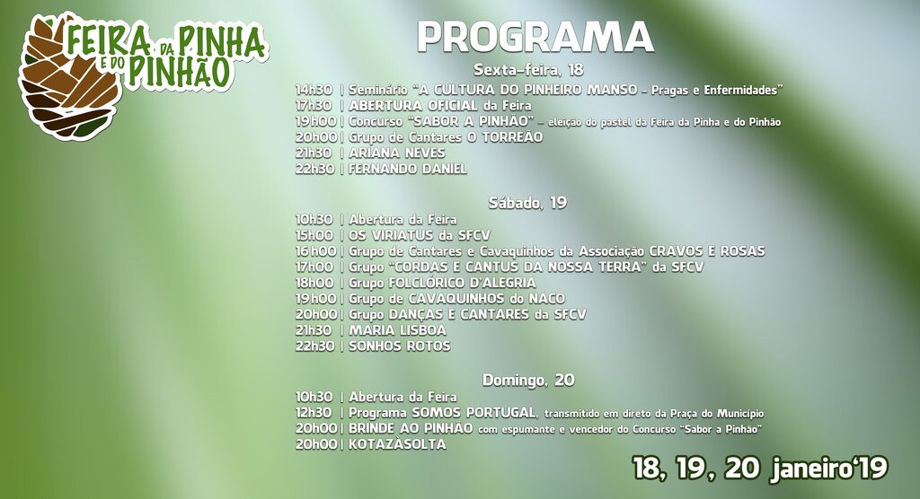 Nos dias 18, 19 e 20 de janeiro de 2019, todos os caminhos vão dar à “Feira da Pinha e do Pinhão | Saberes e Sabores de Terras de Carregal do Sal”, em Carregal do Sal!