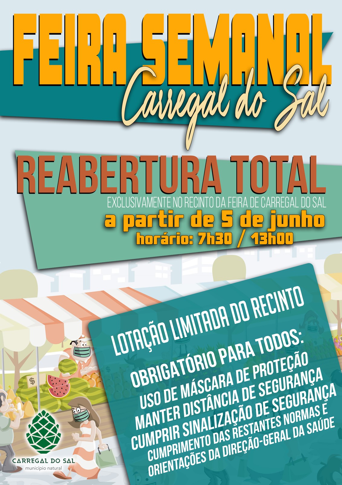 Consulte o Plano de Contingência da Feira Semanal em https://www.cm-carregal.pt.