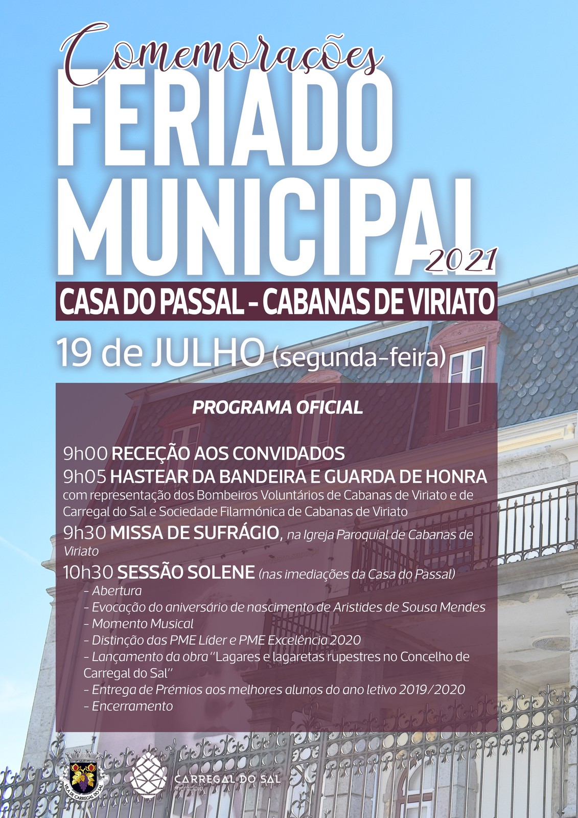 A sessão solene vai realizar-se na Casa do Passal, em Cabanas de Viriato, situação motivada pelo facto de, nesse dia, ser a data de nascimento do humanista Aristides de Sousa Mendes.