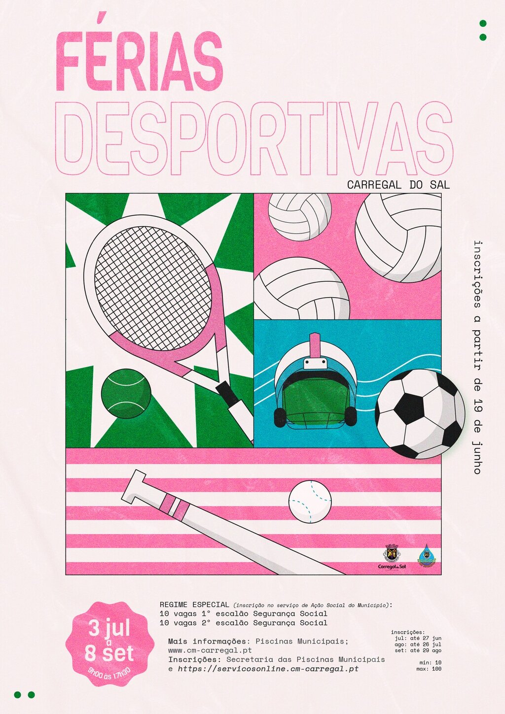 Por iniciativa do Município, irá decorrer a atividade: Férias Desportivas Municipais – Verão 2023 em Carregal do Sal, a decorrerem entre 03 de julho e 08 de setembro, destinadas a crianças/jovens entre os 6 e os 18 anos.