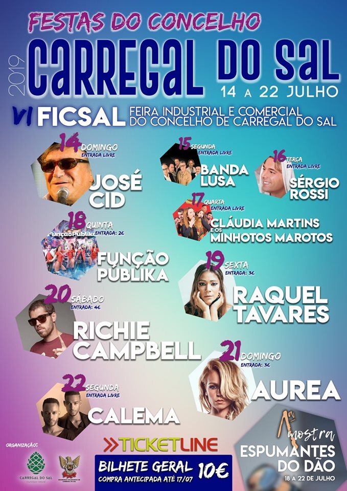 Pela primeira vez sob a organização da Câmara Municipal e a parceria da Associação Humanitária dos Bombeiros Voluntários de Carregal do Sal, as Festas do Concelho apresentam, este ano, um cartaz mais apelativo dividido entre dois palcos e uma nova dinâmica e apresentação do recinto.