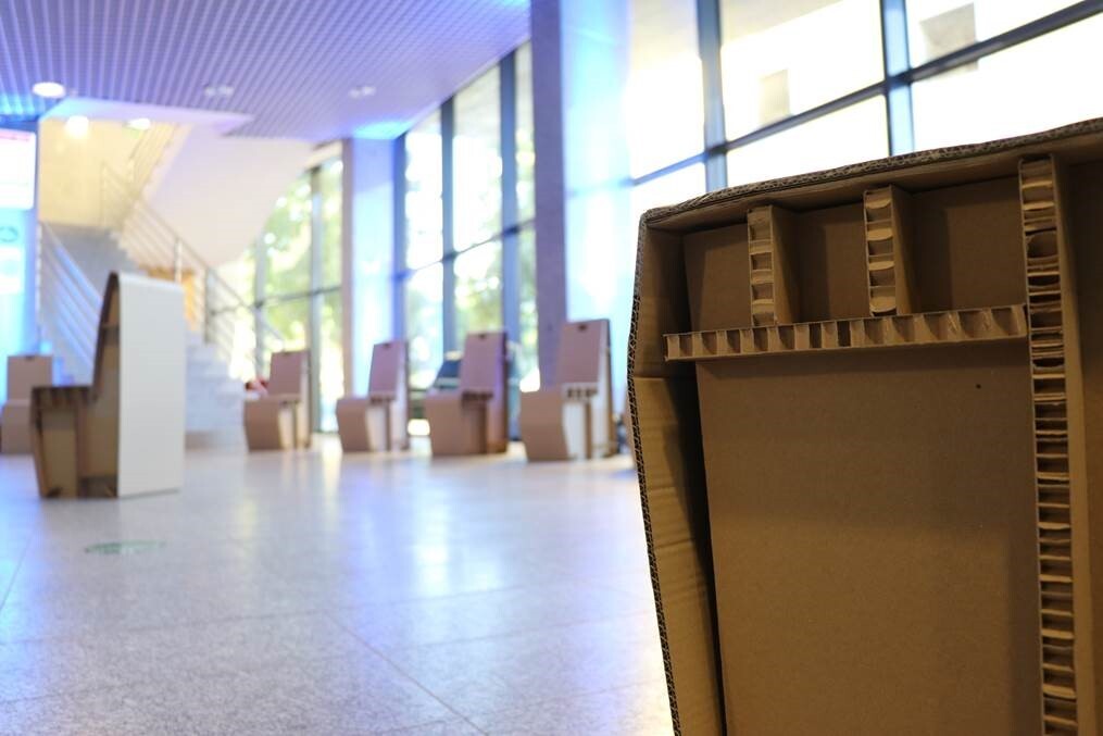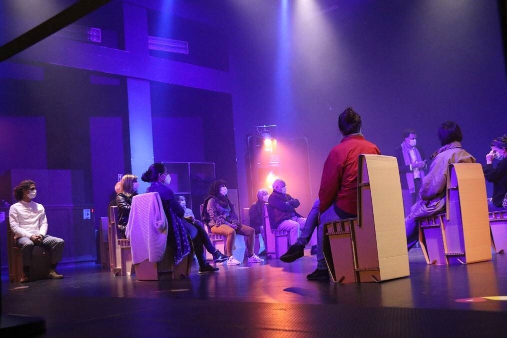 O público foi convidado ao diálogo e, em função das respostas às diversas questões, ia-se posicionando no palco do Centro Cultural nas sui generis cadeiras de cartão que acompanhou cada participante ao longo do “Fluxodrama”.
