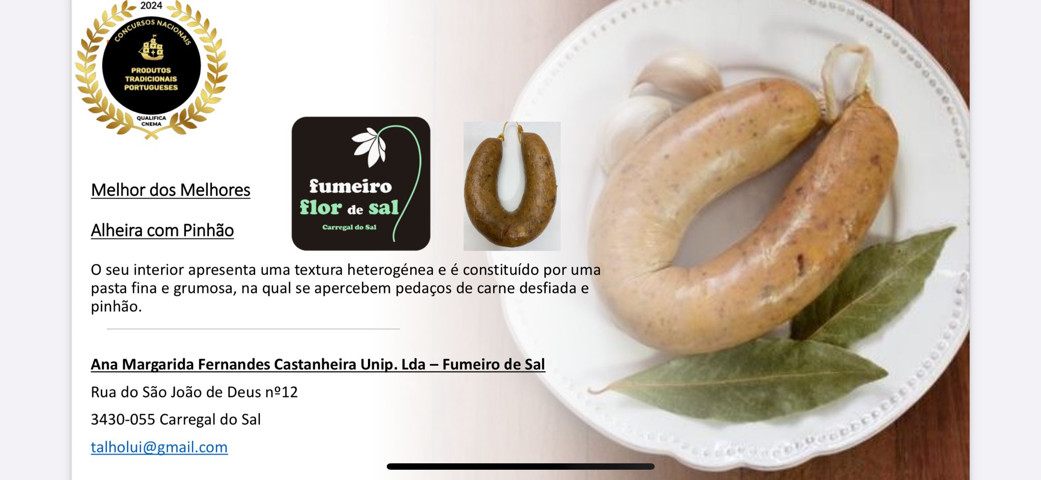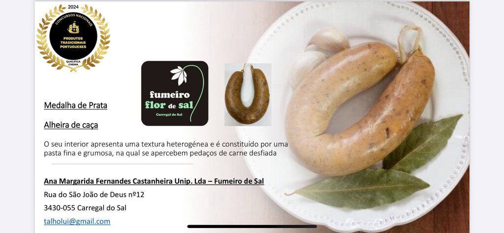 Fumeiro Flor de Sal entre os premiados do 9.º Concurso Nacional de Alheiras Tradicionais Portuguesas