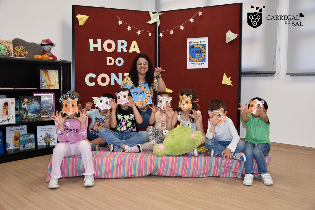 Nas Horas do Conto, os mais pequenos ouviram e exploram as incríveis e inspiradoras histórias “Desculpa!”, de Joseph Coelho, “O Coração de um Gigante”, de Hollie Hughes e Anna Wilson, “Eu sou um Tigre”, de Karl Newson e “A Vaca que subiu a uma árvore”, de Gemma Merino. Com os livros a marcar o ritmo, entraram num universo mágico e soltaram a imaginação. Os textos hilariantes e as brilhantes ilustrações levaram-nos a mergulhar no mundo dos sonhos, da fantasia, da aventura e da diversão e a refletir acerca de determinados temas, promovendo a expressão de sentimentos, de emoções e de valores.