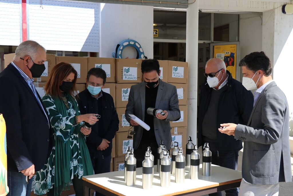 A empresa Águas do Planalto entregou hoje, 3 de maio, 1121garrafas de água reutilizáveis na Escola Secundária de Carregal do Sal, para distribuir por alunos do 1.º ciclo ao ensino secundário, professores e funcionários do respetivo Agrupamento de Escolas.