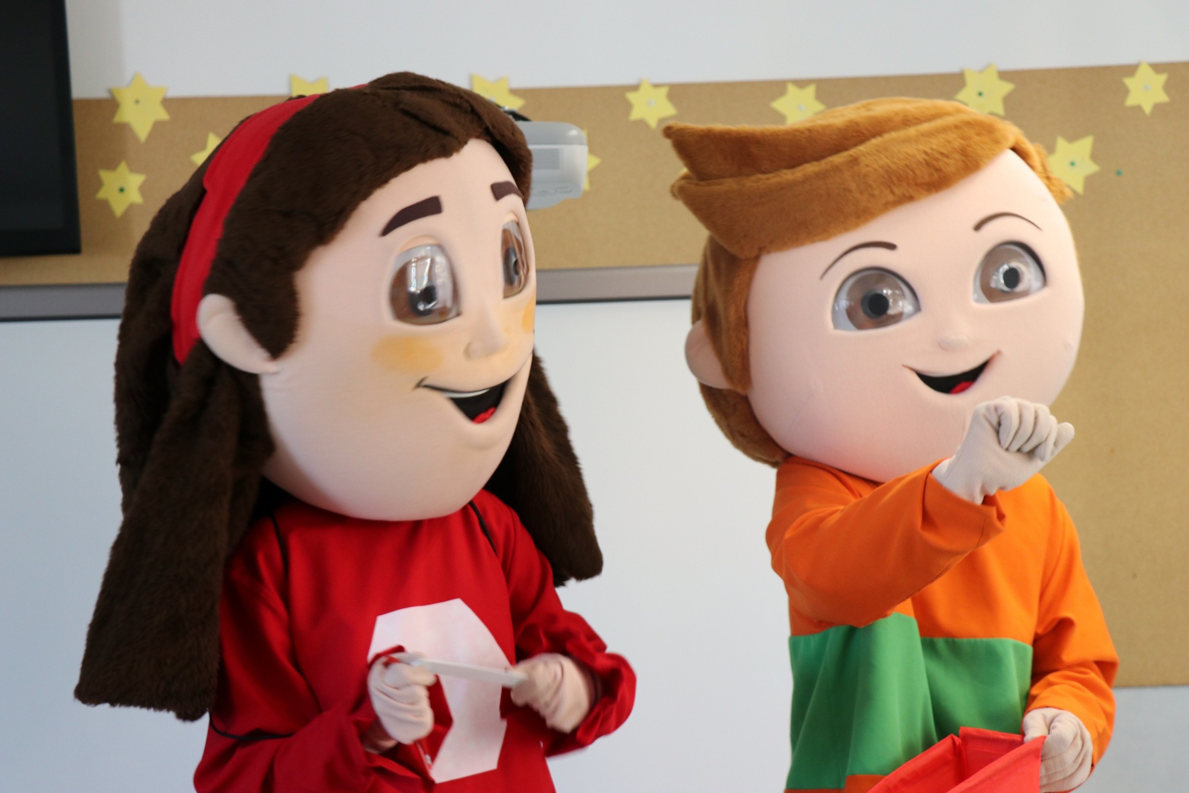 As mascotes do projeto “Wanted - Escolas Empreendedoras da CIM Viseu Dão Lafões”, visitaram, na manhã do dia 14 de fevereiro, o Centro Educativo Nuno Álvares.