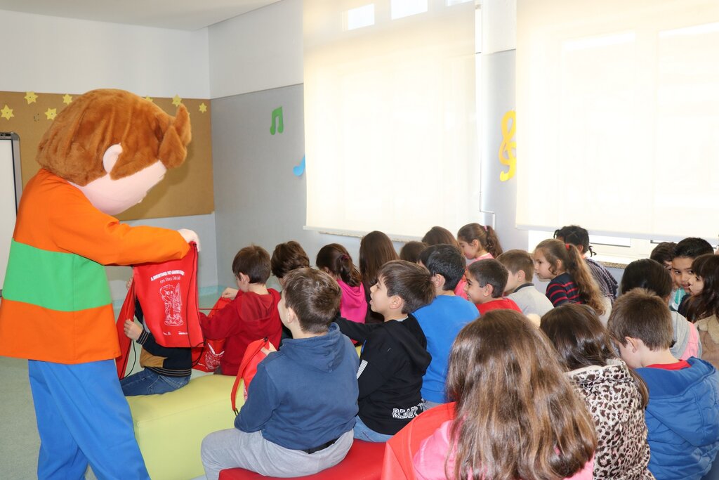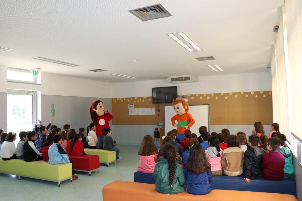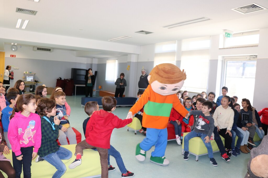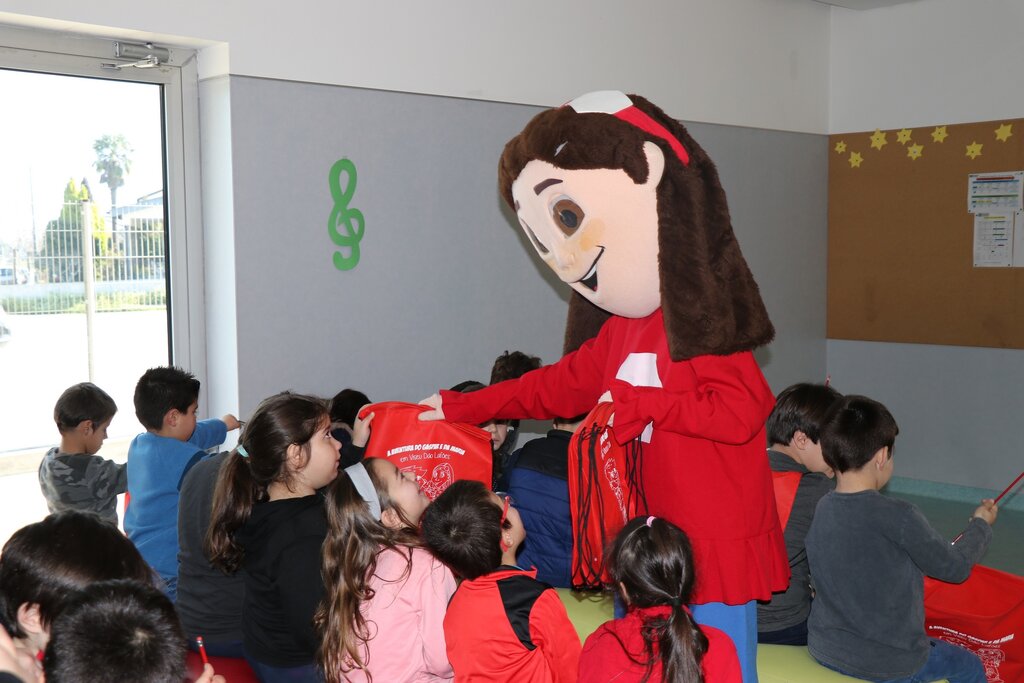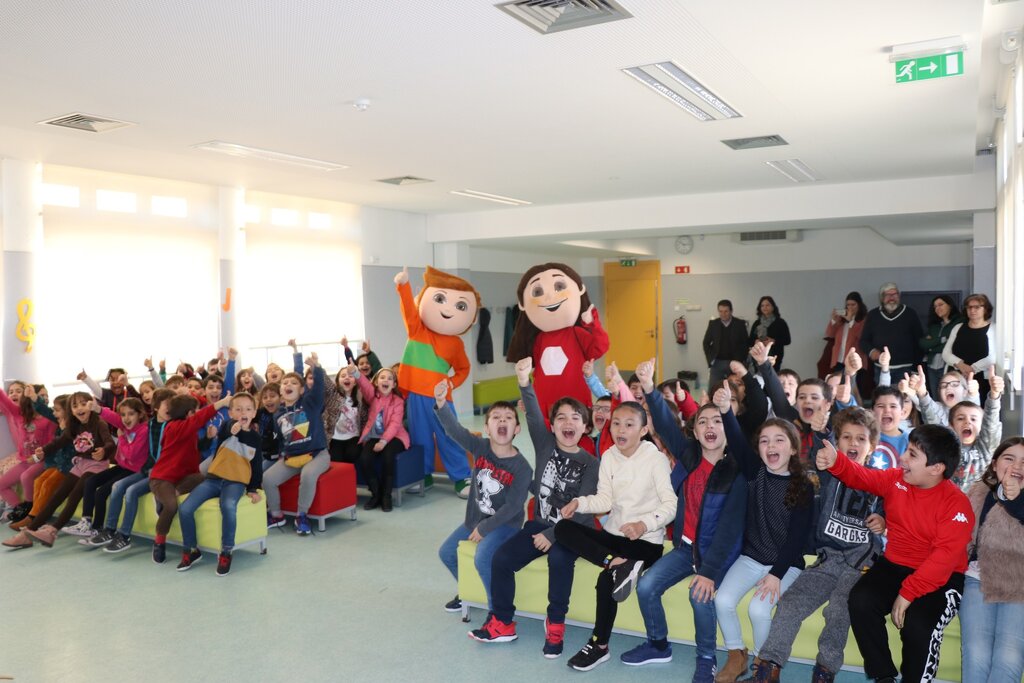 Os mais pequenos interagiram com as mascotes, e no fim foi-lhes entregue o kit pedagógico composto por mochila, lápis flexível, lápis de cera, borracha, régua, puzzle e um postal.