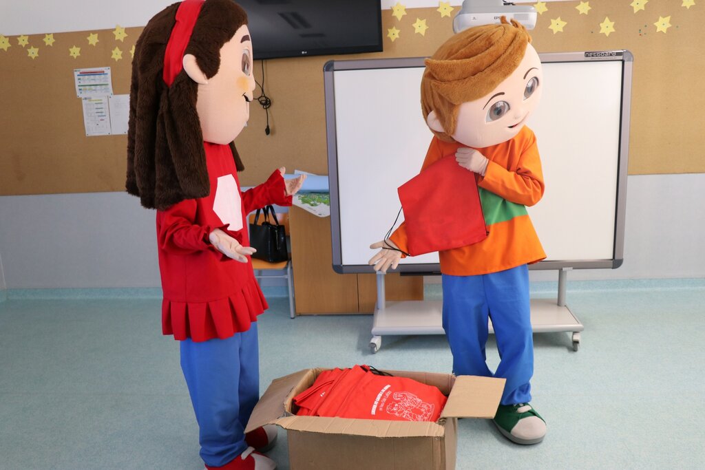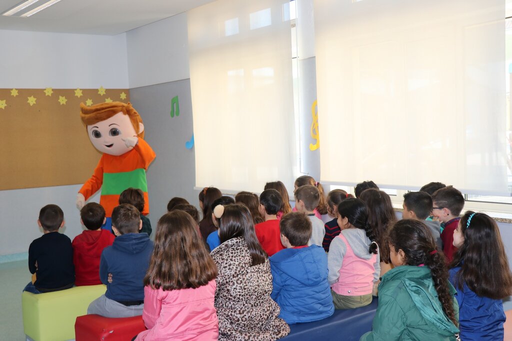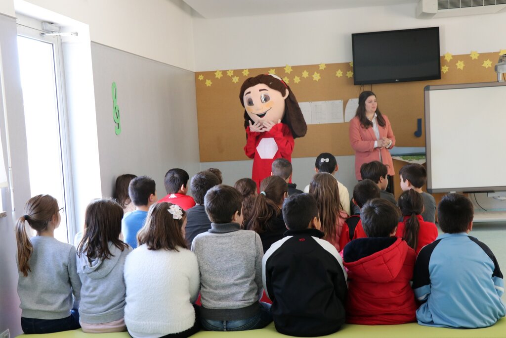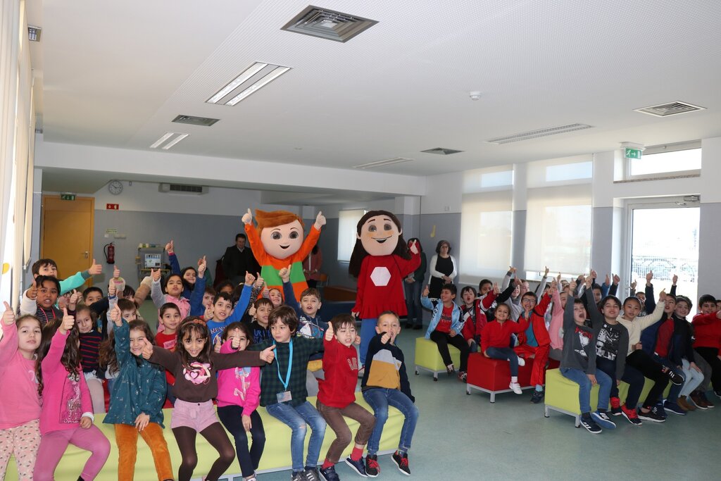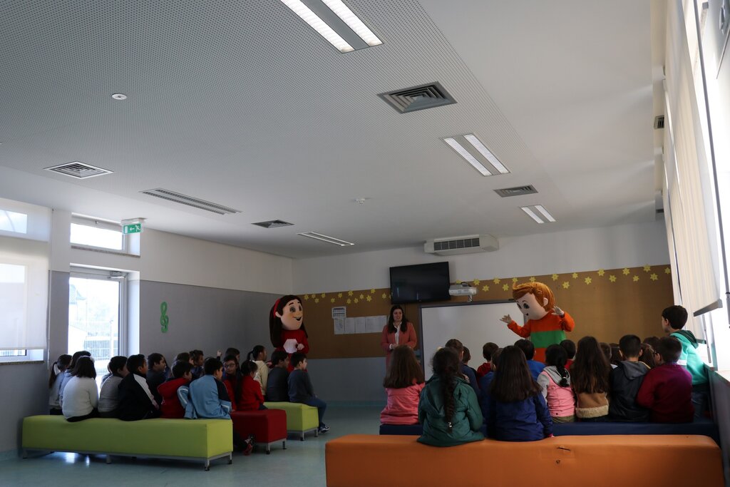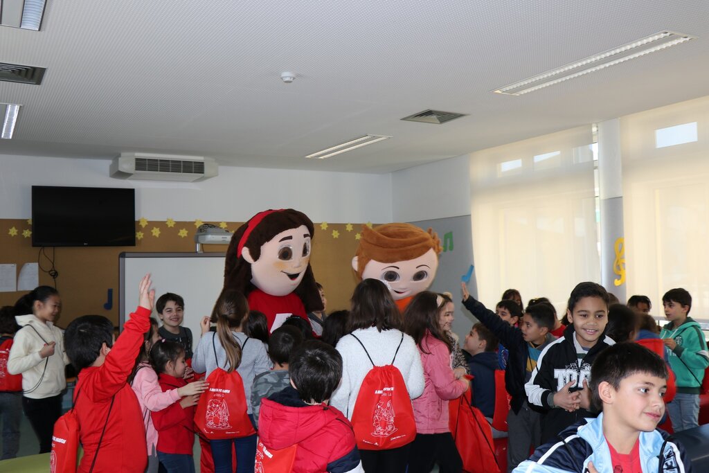 Os mais pequenos interagiram com as mascotes, e no fim foi-lhes entregue o kit pedagógico composto por mochila, lápis flexível, lápis de cera, borracha, régua, puzzle e um postal.
