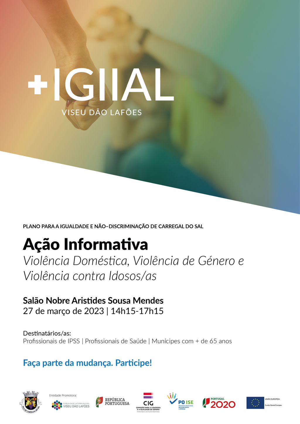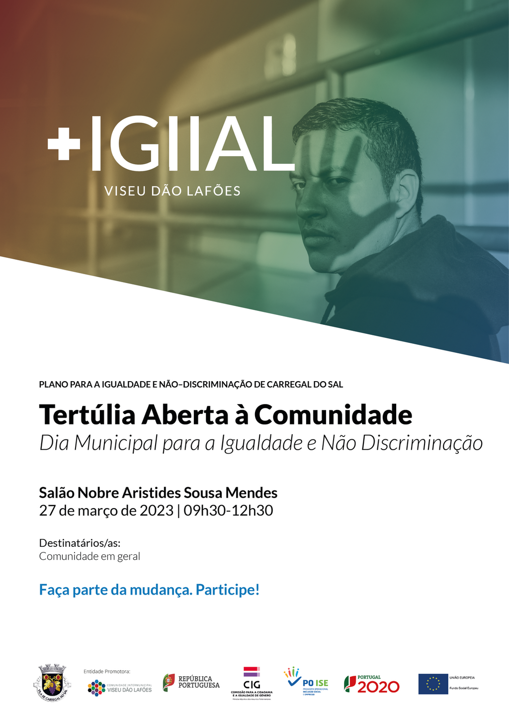 A Câmara Municipal de Carregal do Sal promove, no dia 27 de março, duas iniciativas no âmbito do Plano Para a Igualdade e Não Discriminação de Carregal do Sal, ambas a decorrerem no Salão Nobre Aristides de Sousa Mendes.