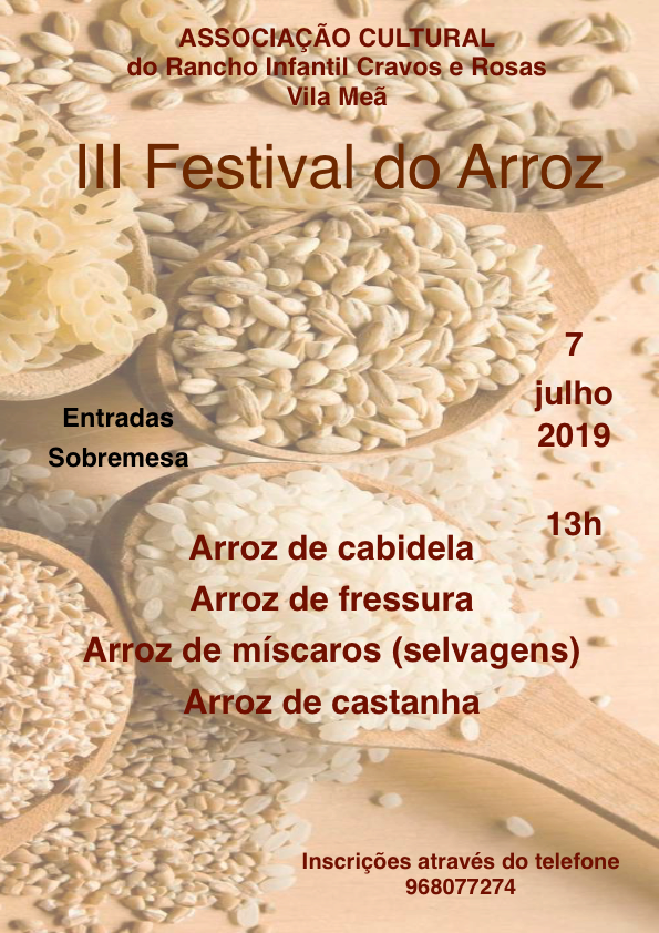 A Associação Cultural do Rancho Infantil Cravos e Rosas de Vila Meã realiza, no próximo domingo, 7 de julho, mais uma edição do Festival do Arroz.