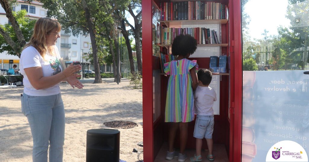 De porta aberta, os primeiros leitores da “Cabine de Leitura” estrearam a estrutura que, a partir de agora, permite que a comunidade tenha acesso livre e gratuito a uma minibiblioteca ali disponibilizada com condição preferencial de, por cada livro que se leve, se deixe outro em troca, devolvendo-o após a leitura.