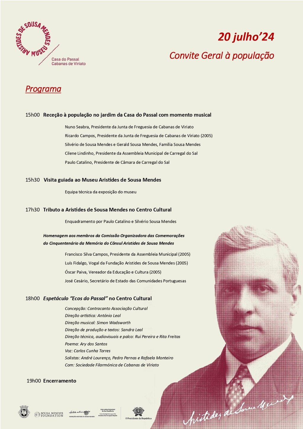 20h00 Tributo a Aristides de Sousa Mendes no Centro Cultural