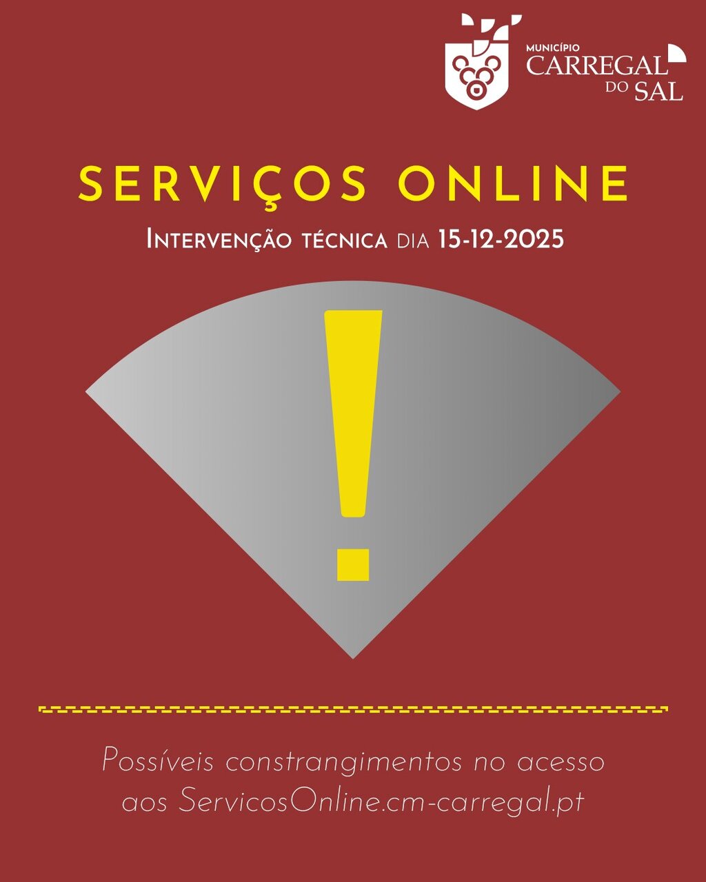 Durante este período os ServicosOnline.cm-carregal.pt estarão indisponíveis.