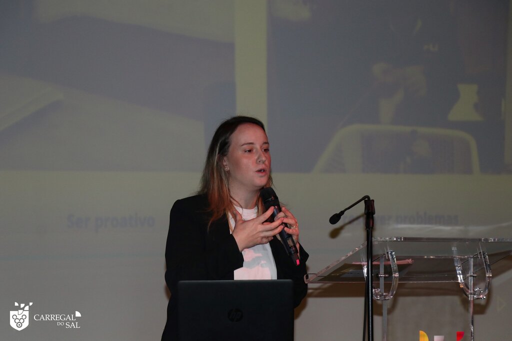 Sara Pais, fotógrafa profissional, empreendedora local, subiu depois ao palco para, também ela, de forma sucinta, abordar o seu percurso. Com apenas 29 anos, a empreendedora local revelou experiências profissionais e estudantis que lhe permitiram concluir o que realmente queria: contar histórias das pessoas, em fotografia. Alcançou esse propósito, tendo atualmente um estúdio que abriu recentemente em Carregal do Sal.
