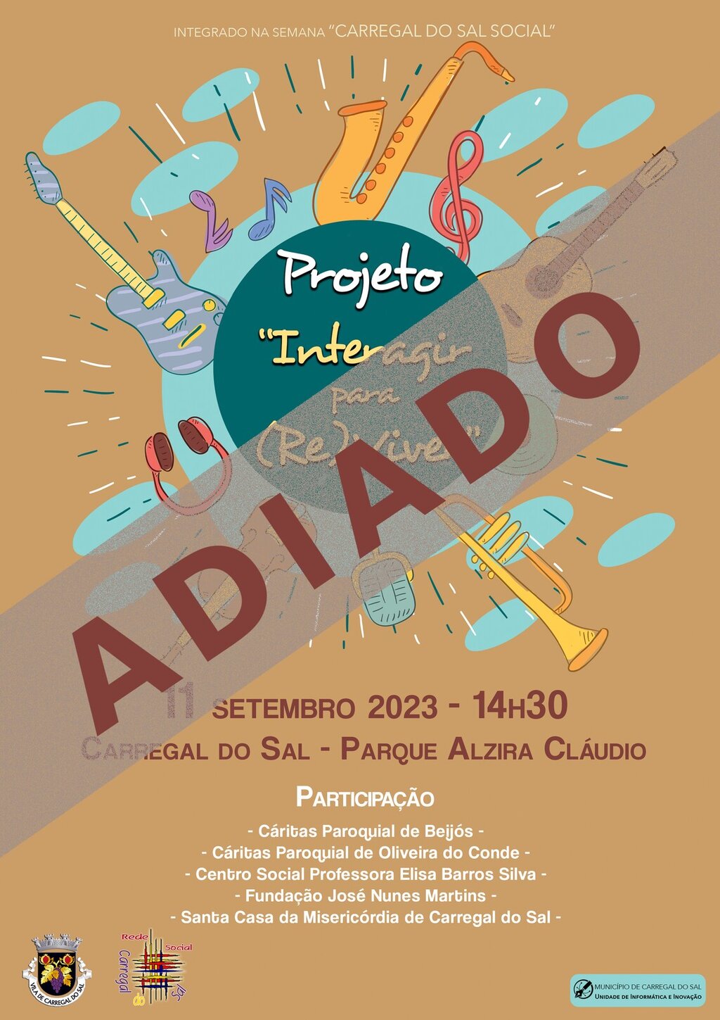 Devido às condições meteorológicas adversas, a atividade “Projeto Interagir para (Re)Viver”, integrada na Semana Carregal do Sal Social, e prevista para a tarde de hoje no parque Alzira Cláudio, será adiada para data oportuna.