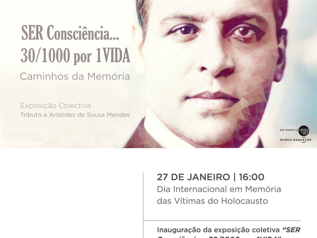 O passado dia 27 de janeiro de 2024, data em que se assinala o Dia Internacional em Memória das Vítimas do Holocausto, ficou marcado pela homenagem a Aristides de Sousa Mendes, na itinerância da exposição coletiva “SER Consciência…30/1000 por 1VIDA”, caminhos da MEMÓRIA, acolhida em Águeda, pela Fundação Dionisio Pinheiro e Alice Cardoso Pinheiro.
