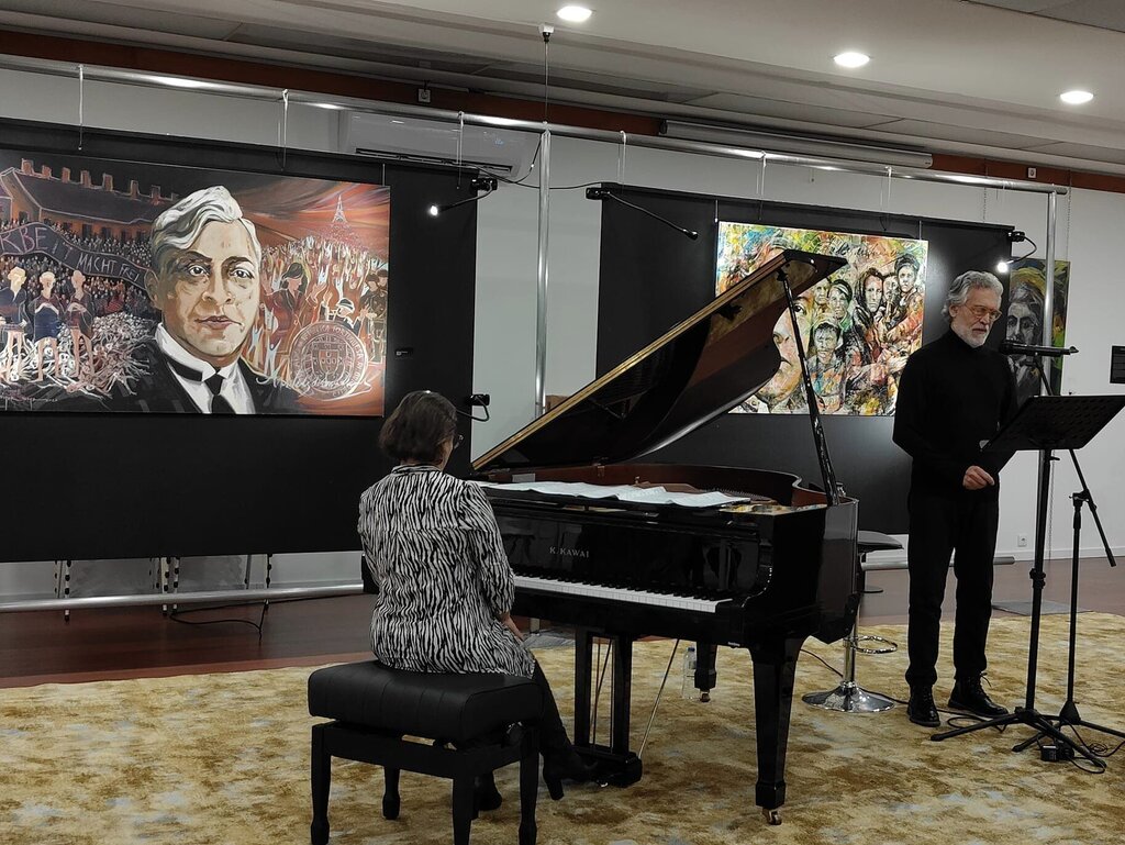 Seguidamente, através da voz de Aurora Gaia, ouvimos palavras emotivas dos poemas de Vieira Duque e Paulo Marçalo, A atmosfera foi enriquecida com uma Paisagem Sonora, proporcionada pelo piano de Cláudia Rocha e as palavras de David Morais Cardoso e a entrega do Passaporte “Dever de Memória”, a todos os artistas participantes, num gesto de grande simbolismo.