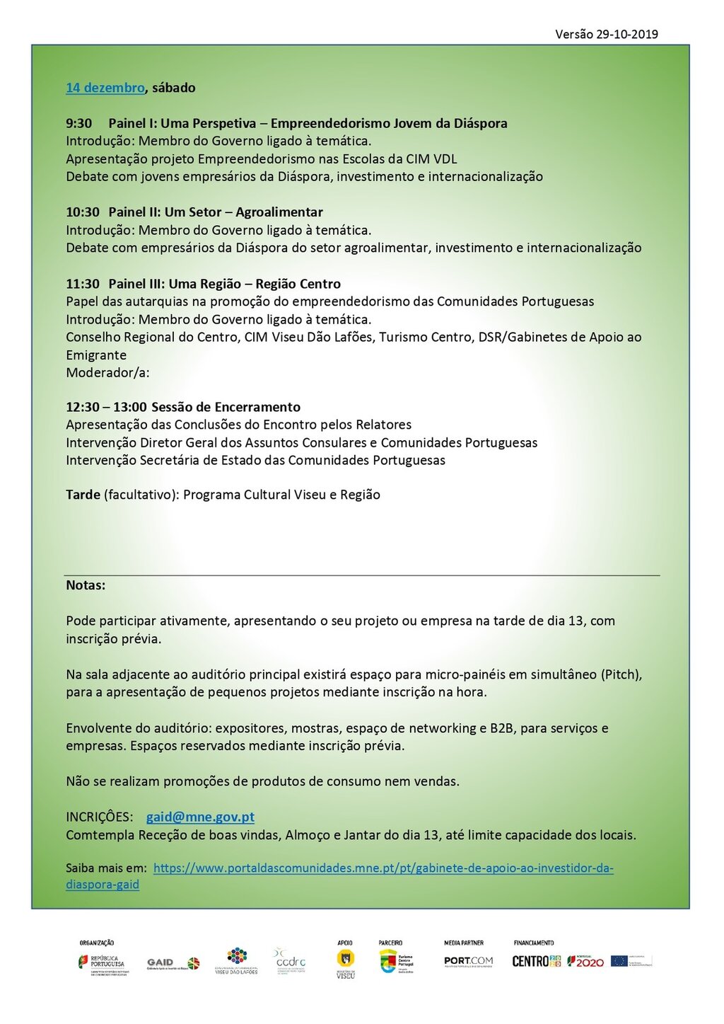 Fruto das diligências e dos profícuos contactos estabelecidos entre o Ministério dos Negócios Estrangeiros (através do Gabinete de Apoio ao Investidor da Diáspora), a CIM Viseu Dão Lafões e a CCDR-Centro, é facultada aos empresários a oportunidade de apoio às iniciativas de investimento.