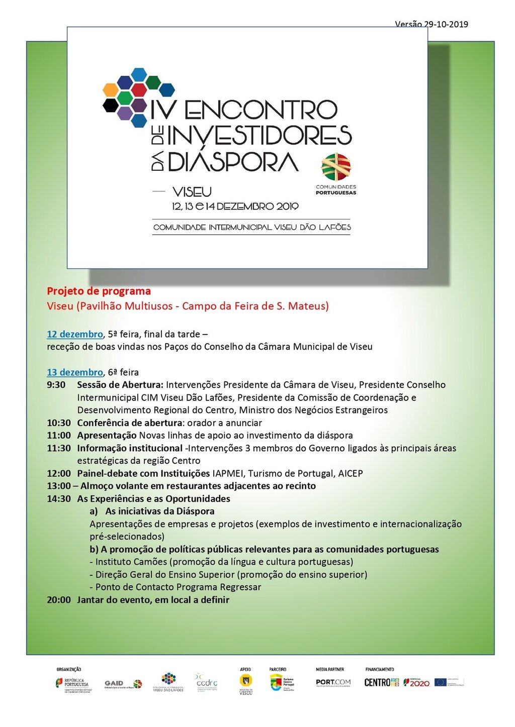 IV Encontro de Investidores da Diáspora | 12 a 14 de dezembro - Viseu