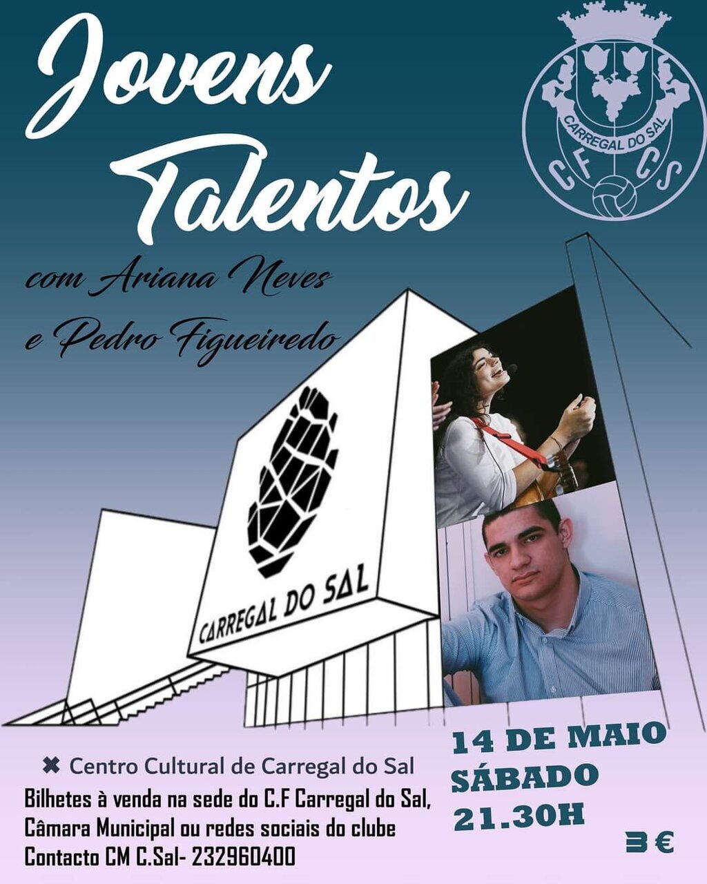 O Centro Cultural de Carregal do Sal vai estar de portas abertas no próximo sábado, 14 de maio, a partir das 21h30, para acolher um concerto promovido pelo Clube de Futebol de Carregal do Sal.