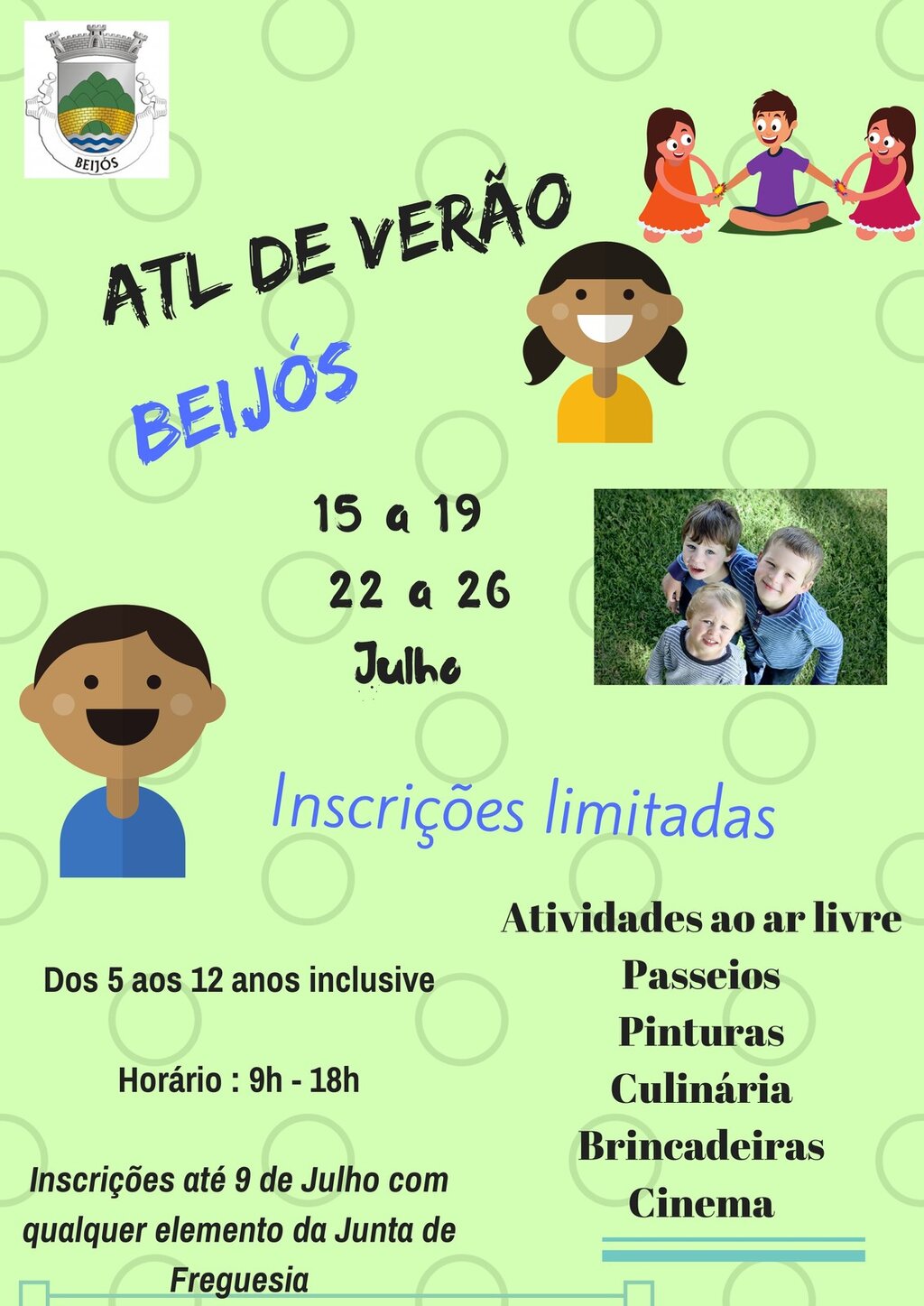 A Junta de Freguesia de Beijós vai promover mais um ATL de verão para as crianças dos 5 aos 12 anos.