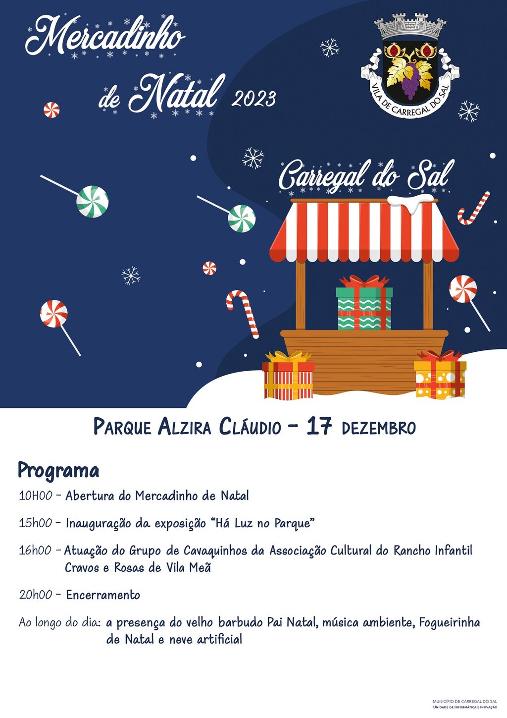 No dia 17 de dezembro, tendas com artesanato, onde terá a possibilidade de encontrar artigos originais e diversificados, comes e bebes e animação, que irão dinamizar aquele espaço na realização de mais um Mercadinho de Natal.