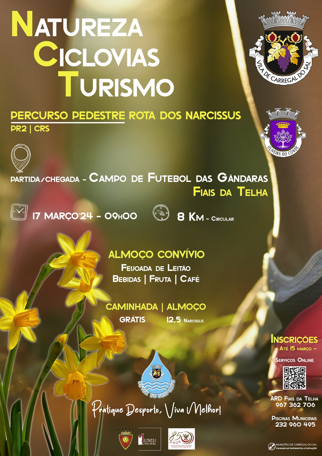 A iniciativa, desenvolvida em ampla parceria com as Juntas de Freguesia e o movimento associativo concelhio, arranca no dia 17 de março com a visita ao “Percurso Pedestre Rota dos Narcisos PR2/CRS”, dinamizada pelos técnicos do Setor do Desporto e Museologia da Câmara Municipal.