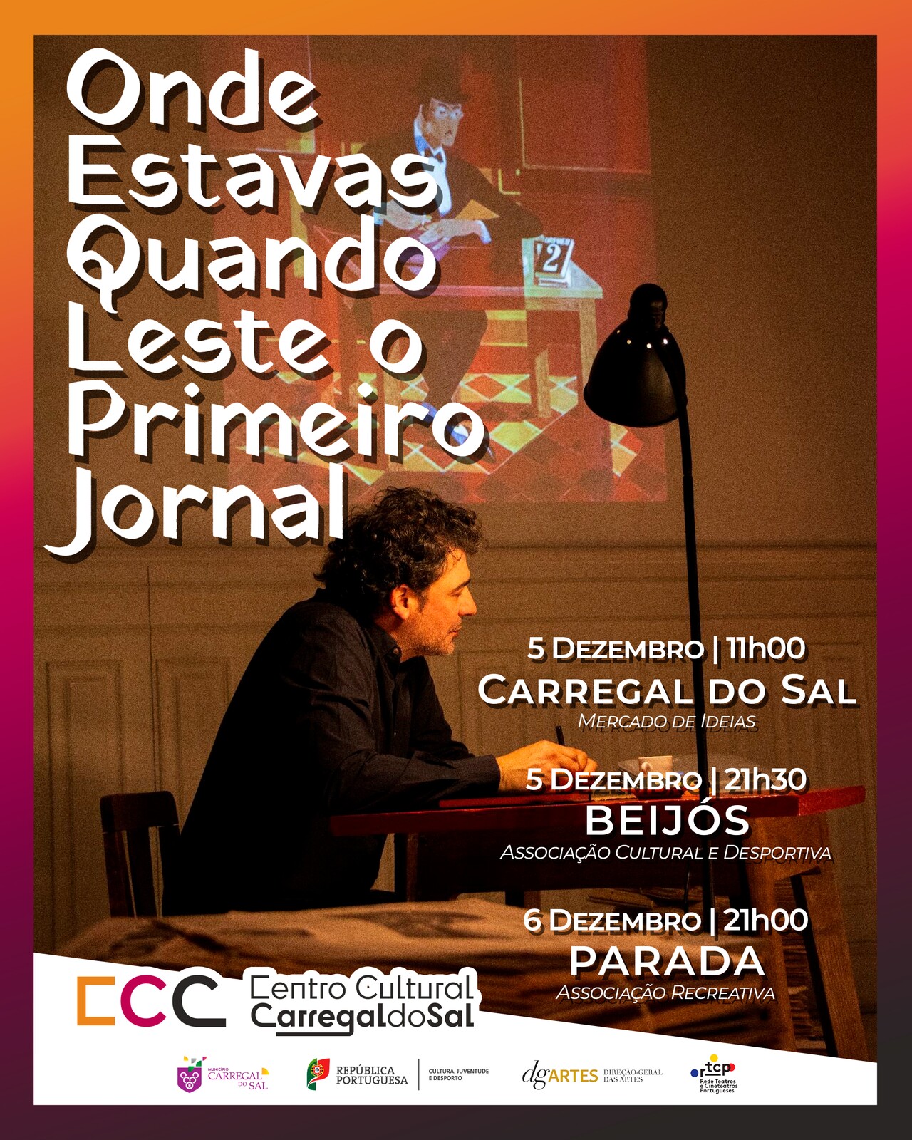 A peça - “Onde estavas quando leste o primeiro jornal?” será apresentado em Carregal do Sal e Beijós no dia 5 de dezembro e em Parada no dia 6 de dezembro, reunindo a dramaturga e encenadora Sónia Barbosa e a interpretação de Cristóvão Cunha.