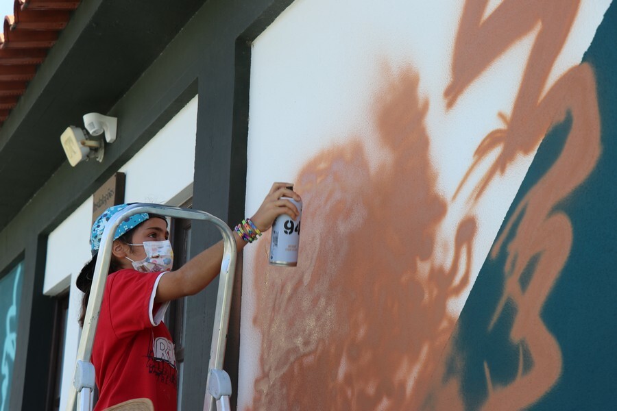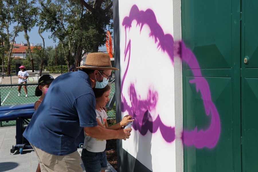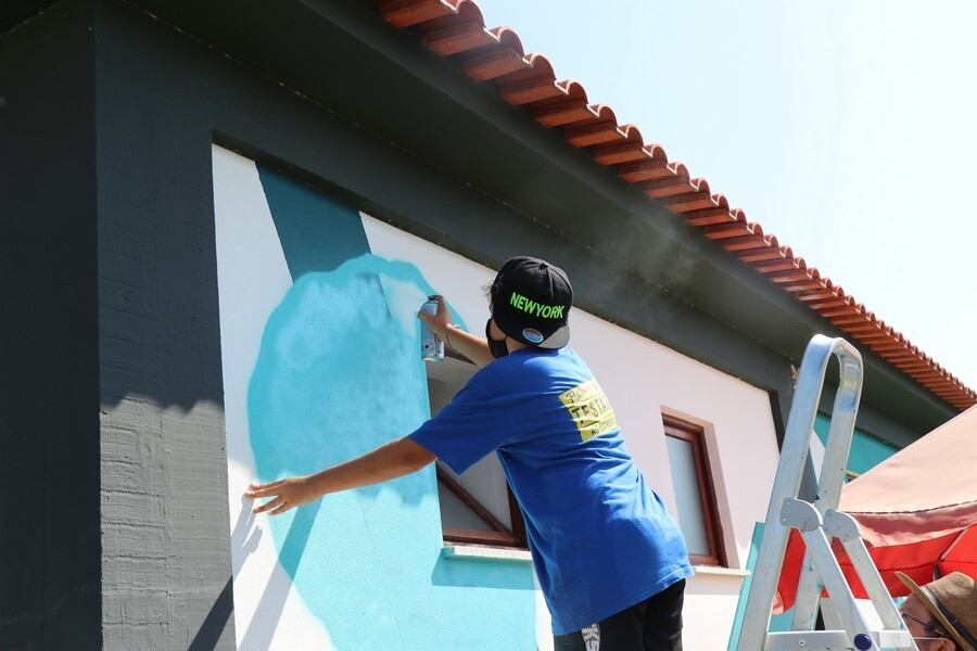 A ação permitiu aos mais pequenos colaborarem ativamente no projeto artístico do espaço concebido pelo artista e até lhes permitiu ganharem asas para livremente pintarem uma das paredes, ainda que de forma provisória.